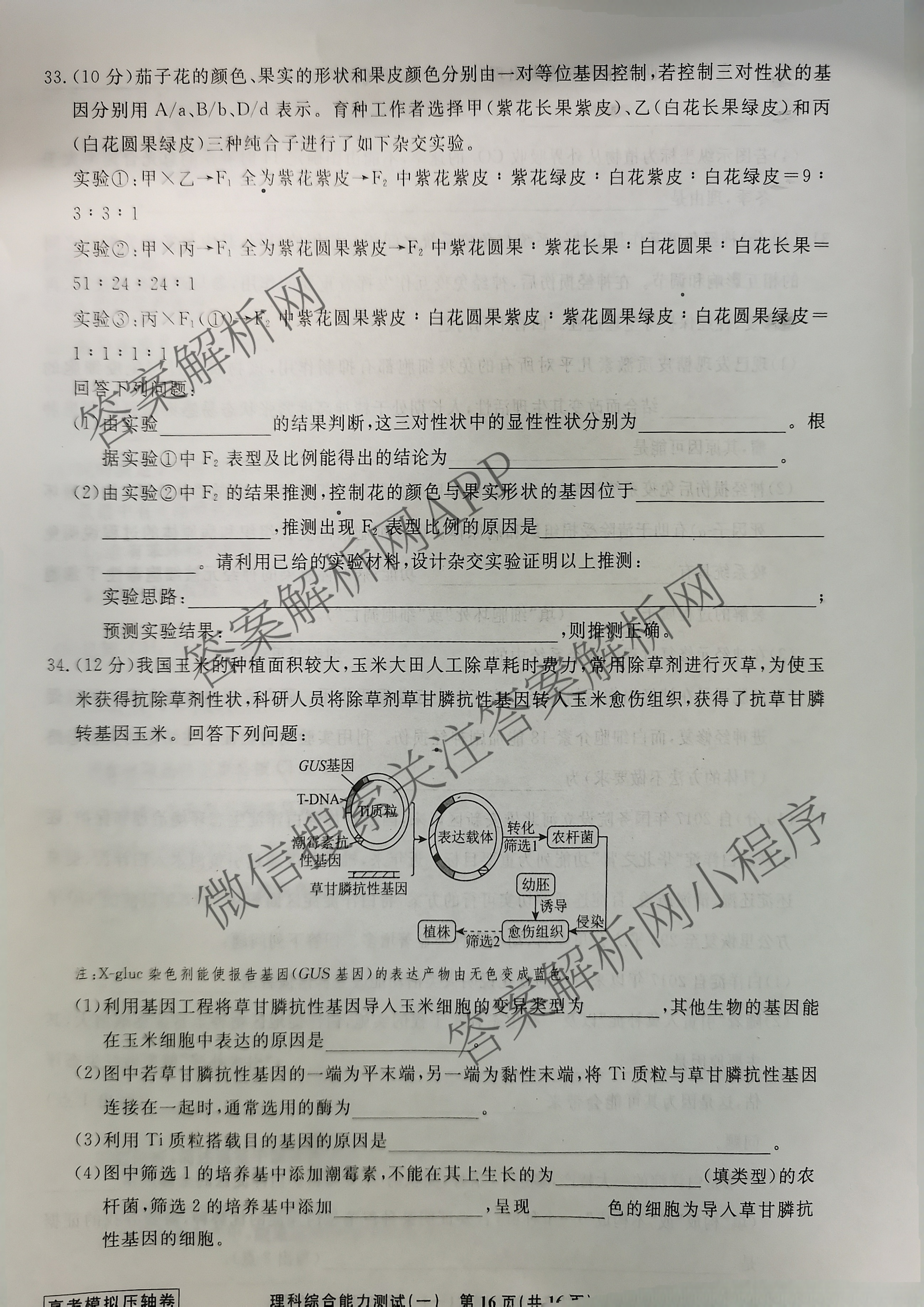 - [高三](衡水名师卷)·高考模拟压轴卷 2025年普通高等学校招生全国统一考试模拟(一)1理综答案