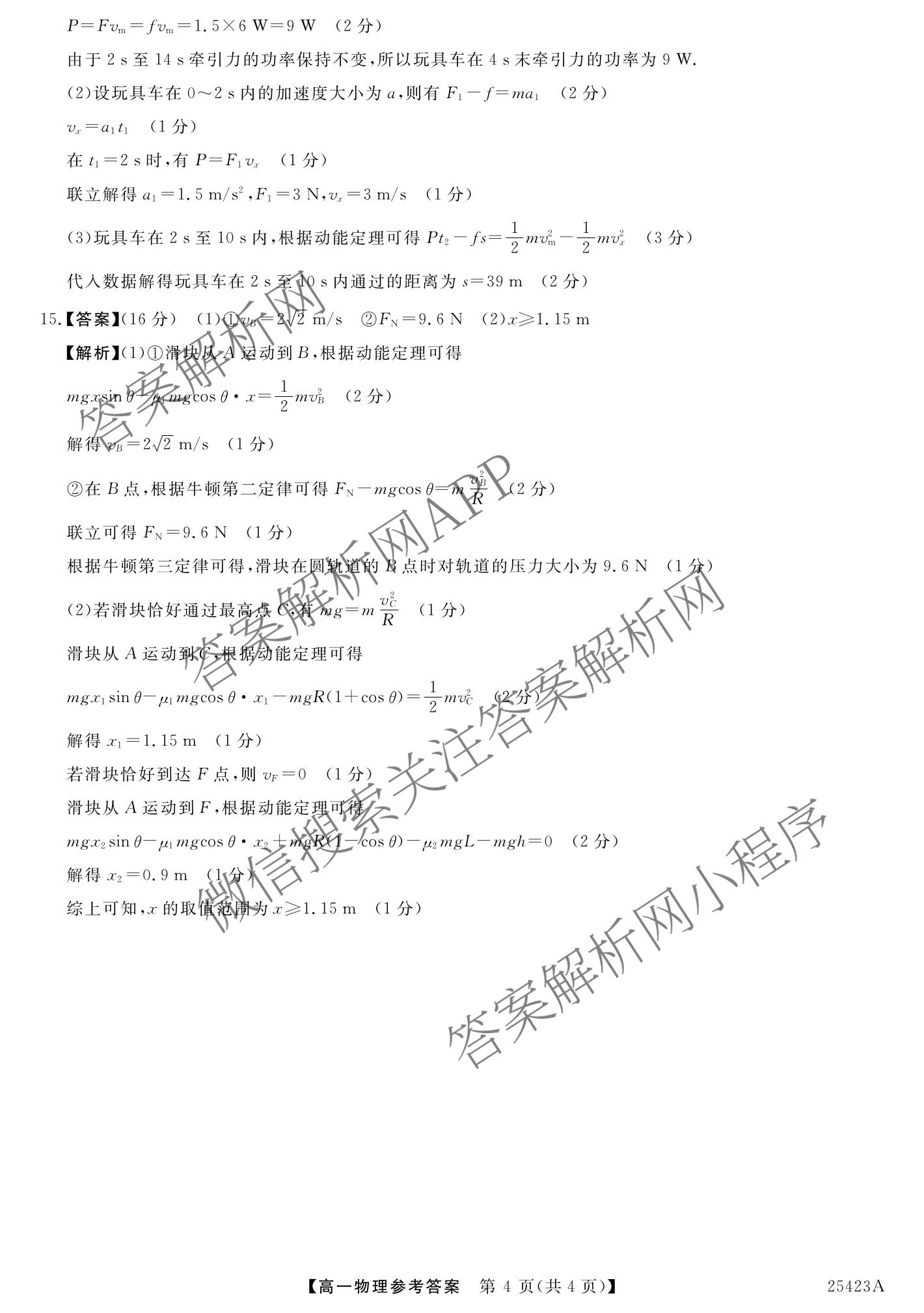 吉林省2024~2025学年度高一第二学期期中考试(25423A)物理答案,目前分科卷答案网已经汇总了吉林省2024~2025学年度高一第二学期期中考试(25423A)物理答案的各科答案和试卷,获取更多地方模拟答案解析,请在关注本站。