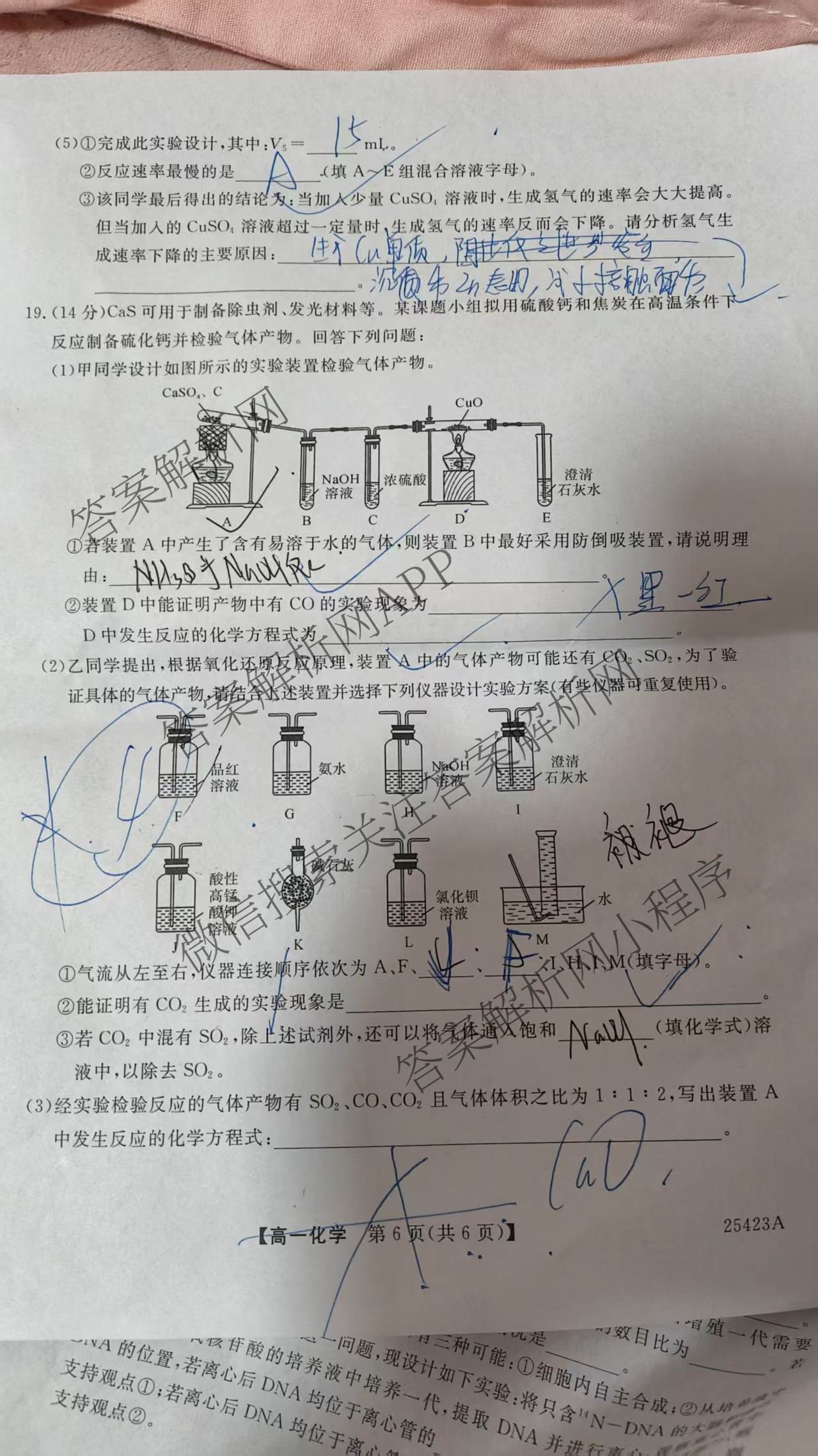 吉林省2024~2025学年度高一第二学期期中考试(25423A)化学试题,目前分科卷答案网已经汇总了吉林省2024~2025学年度高一第二学期期中考试(25423A)化学试题的各科答案和试卷,获取更多地方模拟答案解析,请在关注本站。