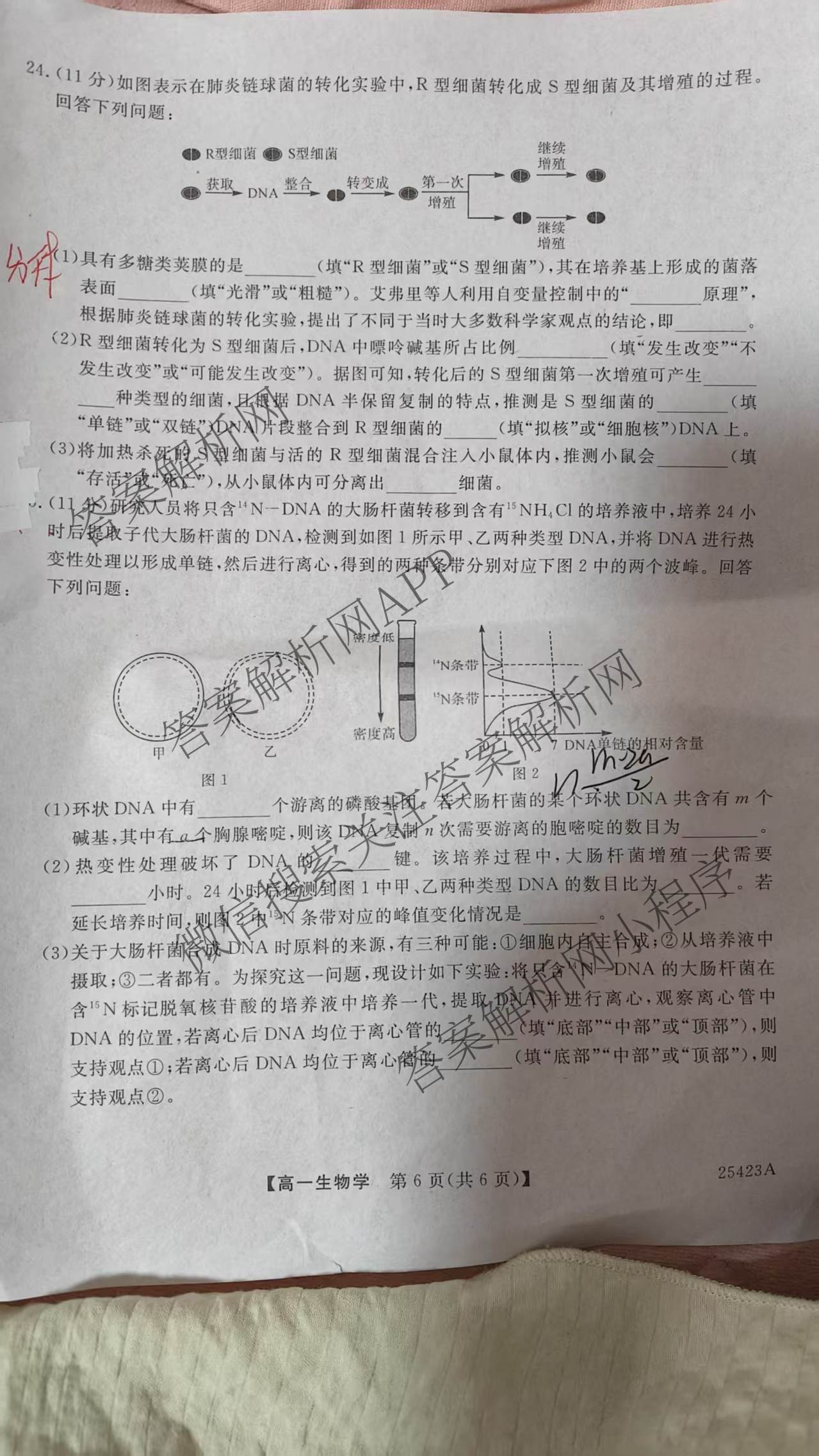 吉林省2024~2025学年度高一第二学期期中考试(25423A)生物试题,目前分科卷答案网已经汇总了吉林省2024~2025学年度高一第二学期期中考试(25423A)生物试题的各科答案和试卷,获取更多地方模拟答案解析,请在关注本站。