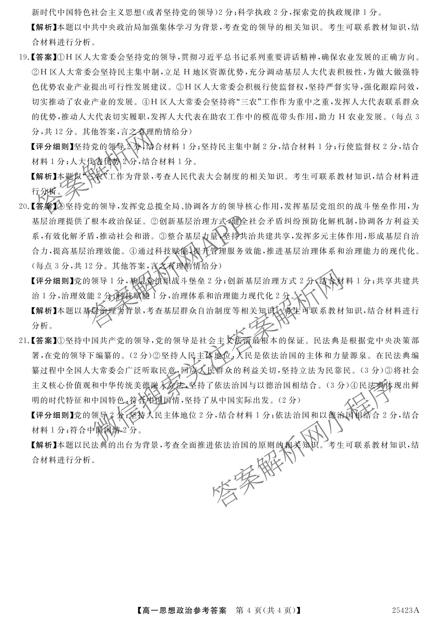 吉林省2024~2025学年度[高一]第二学期期中考试(25423A)政治答案