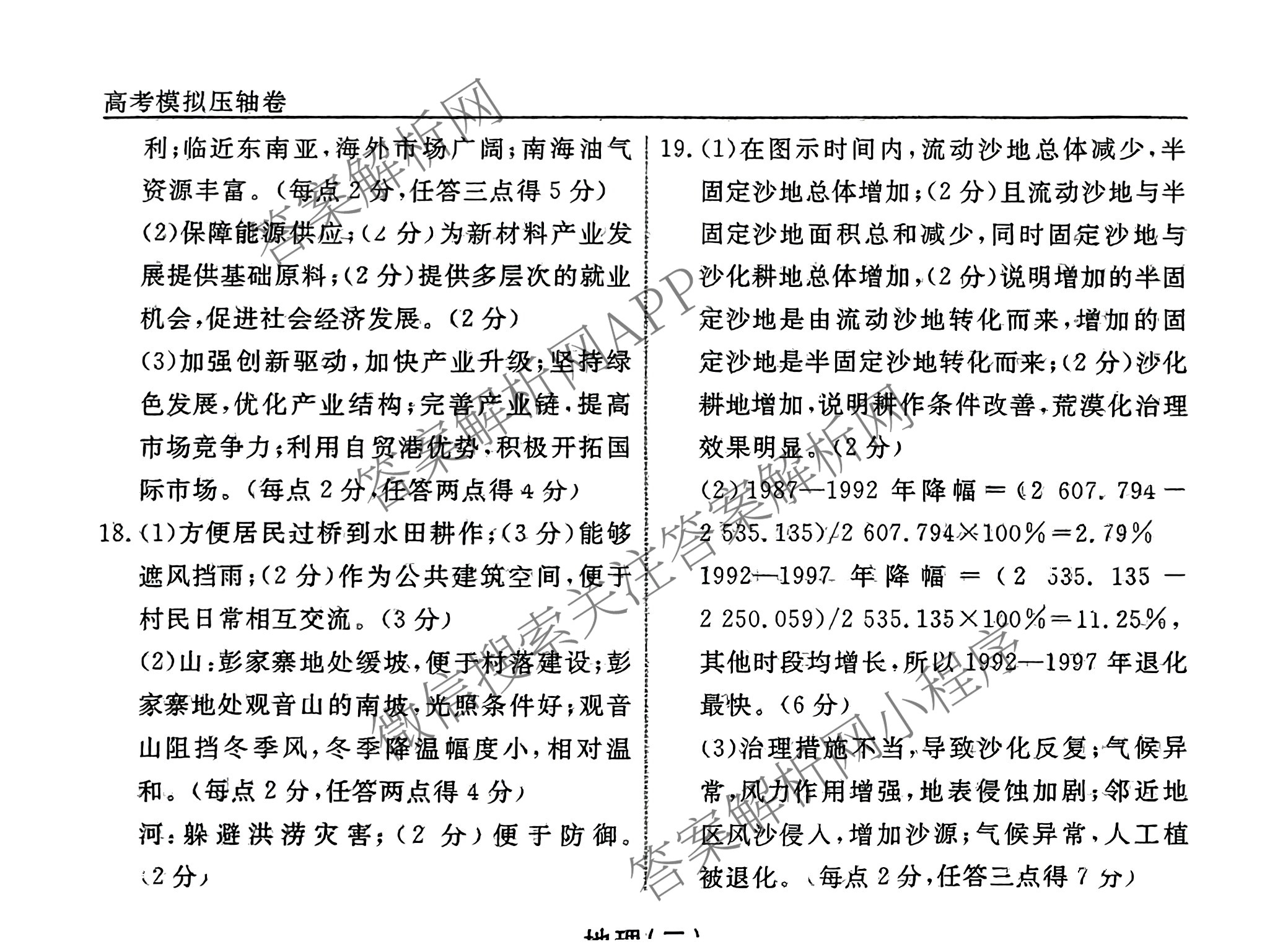 - (高三)(衡水名师卷)高考模拟压轴卷 2025年普通高等学校招生全国统一考试模拟(一)1地理(※)答案