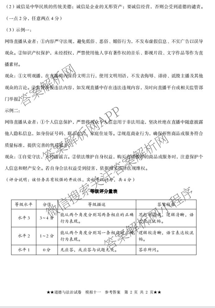 - 2025年河北省初中学业水平模拟测评(十一)二星道德与法治答案