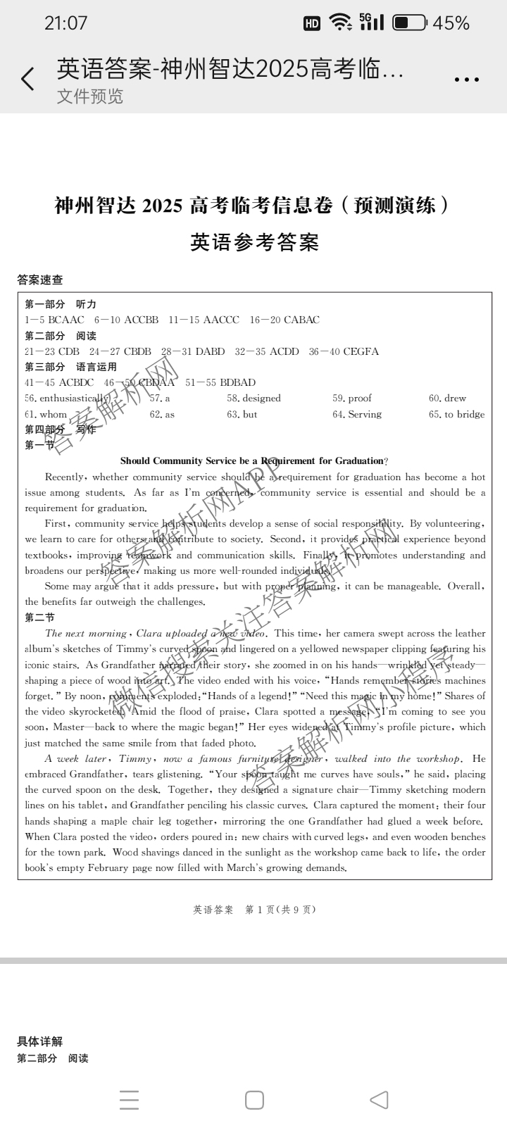 [神州智达]2025高考临考信息卷(预测演练)英语答案