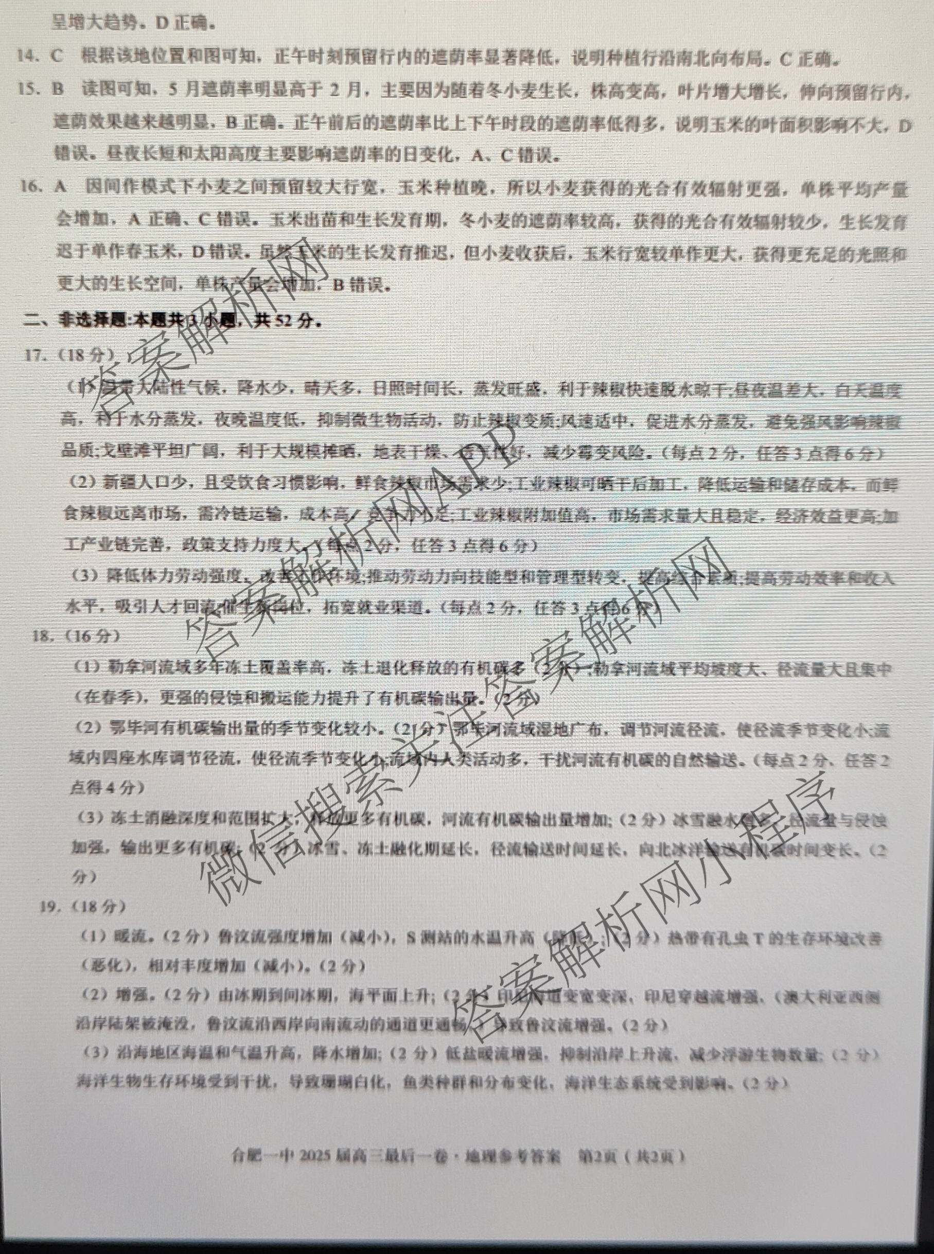 2025届(高三)安徽省十联考合肥一中最后一卷地理答案