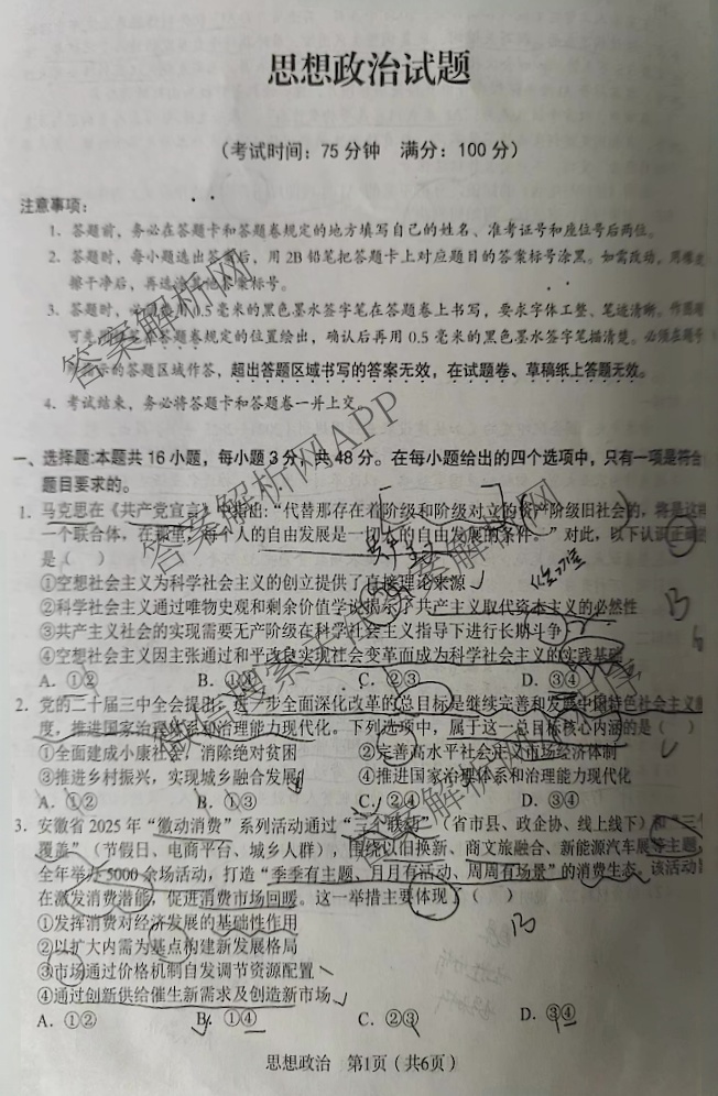 安徽省十联考合肥一中2025届高三最后一卷政治试题,目前分科卷答案网已经汇总了安徽省十联考合肥一中2025届高三最后一卷政治试题的各科答案和试卷,获取更多地方模拟答案解析,请在关注本站。