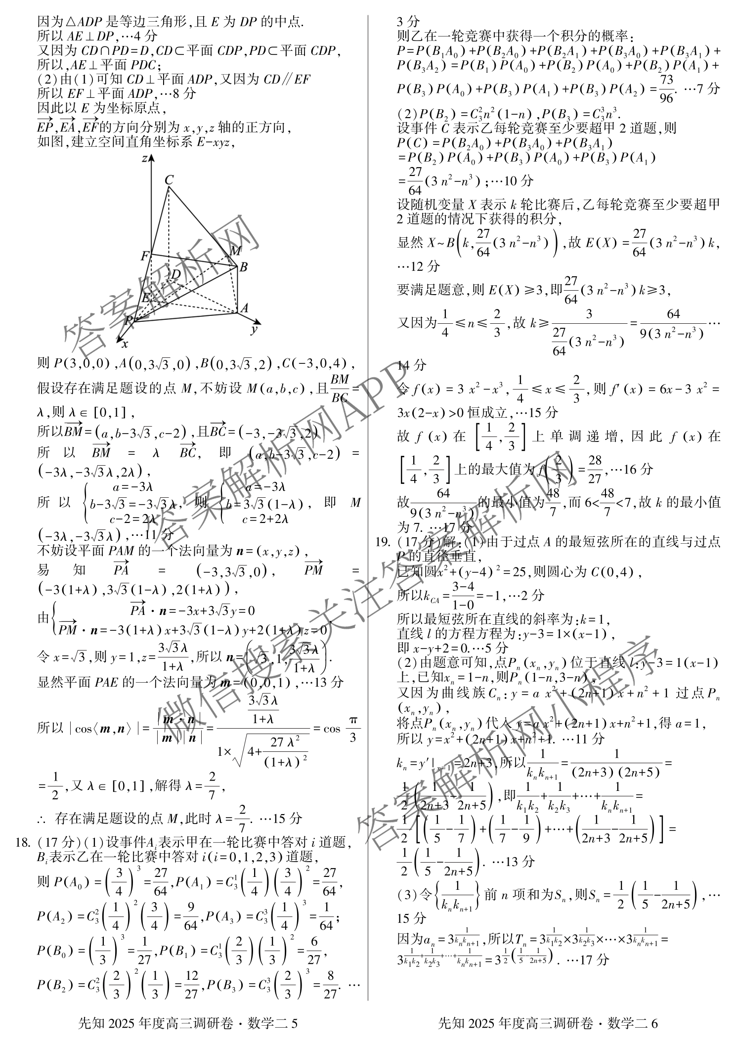 先知2025年度高三调研卷二数学答案,目前分科卷答案网已经汇总了先知2025年度高三调研卷二数学答案的各科答案和试卷,获取更多先知答案解析,请在关注本站。