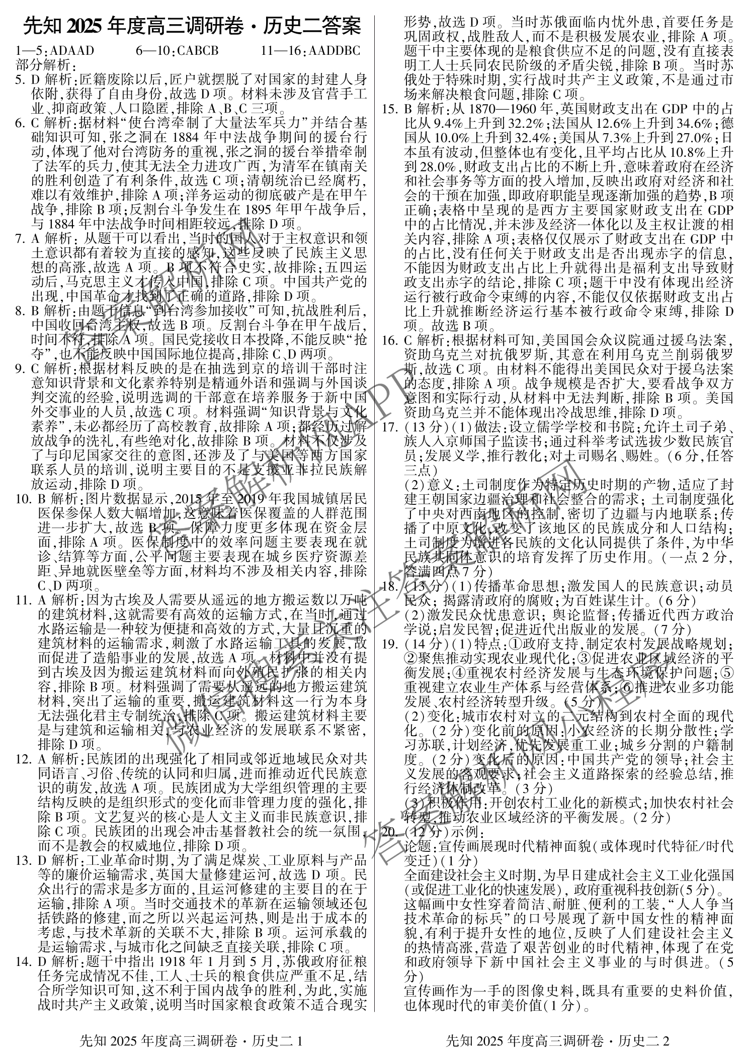 先知2025年度高三调研卷二历史答案,目前分科卷答案网已经汇总了先知2025年度高三调研卷二历史答案的各科答案和试卷,获取更多先知答案解析,请在关注本站。