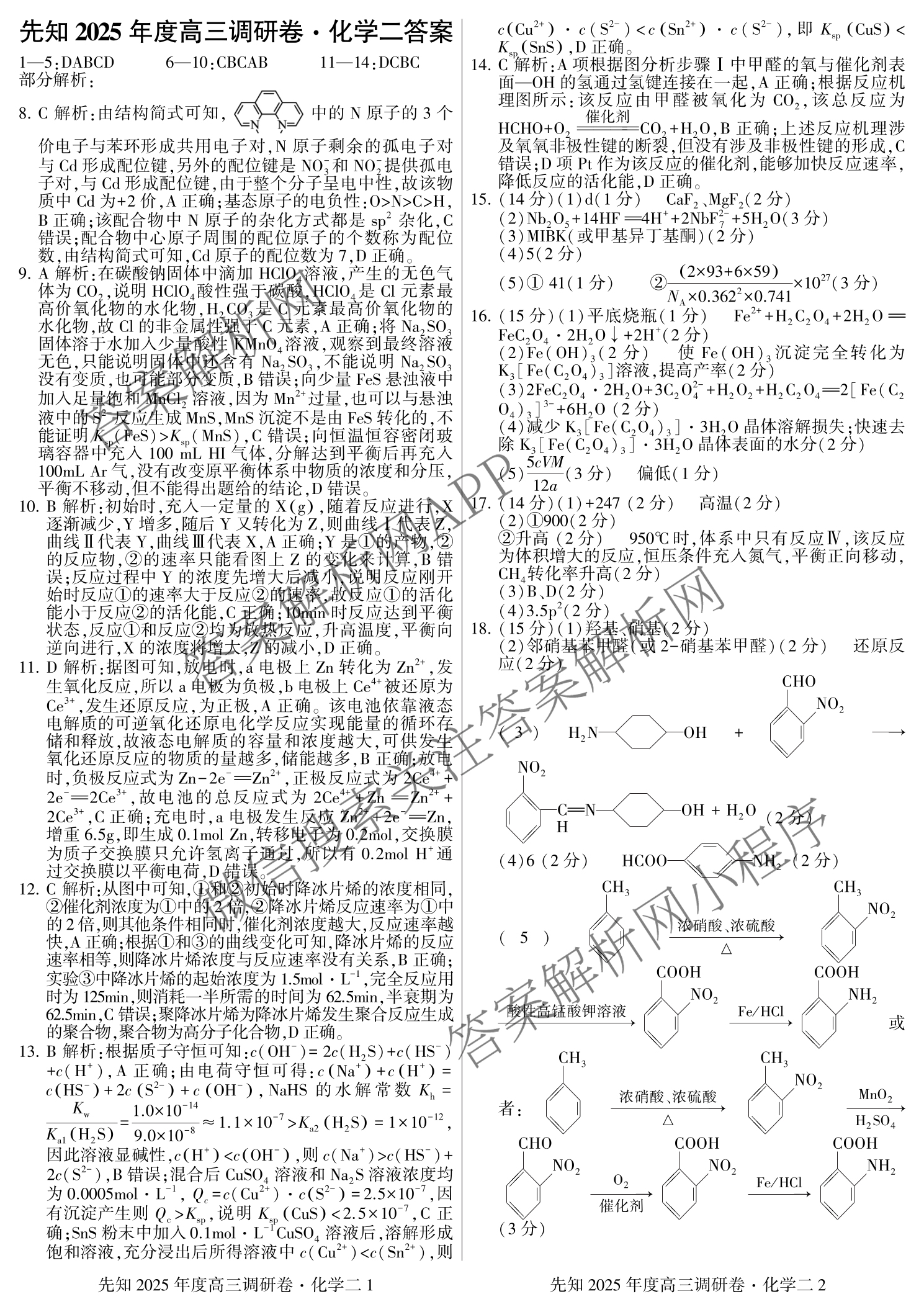 先知2025年度高三调研卷二化学答案,目前分科卷答案网已经汇总了先知2025年度高三调研卷二化学答案的各科答案和试卷,获取更多先知答案解析,请在关注本站。