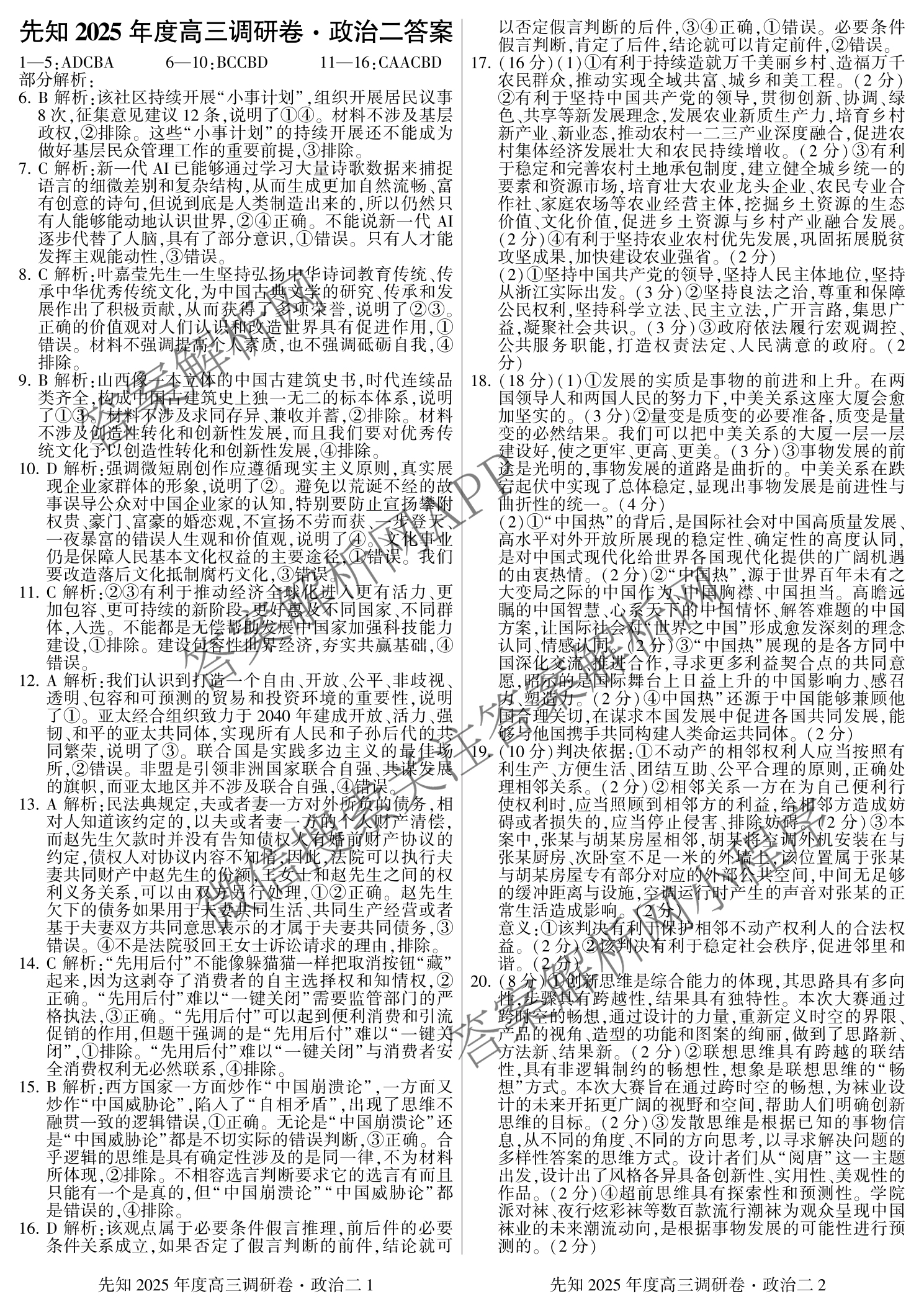 先知2025年度高三调研卷二政治答案,目前分科卷答案网已经汇总了先知2025年度高三调研卷二政治答案的各科答案和试卷,获取更多先知答案解析,请在关注本站。