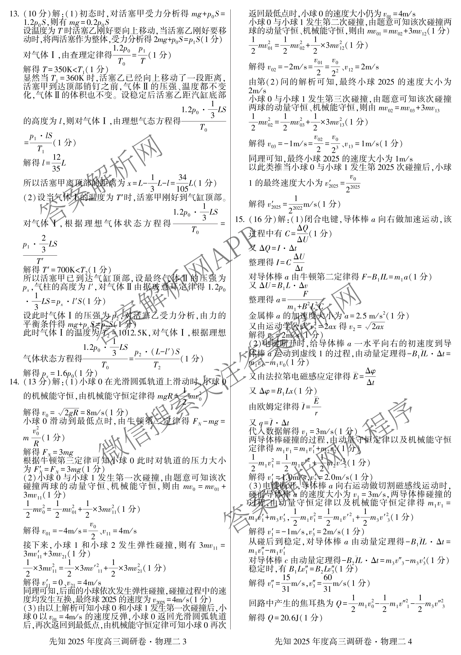 先知2025年度高三调研卷二物理答案,目前分科卷答案网已经汇总了先知2025年度高三调研卷二物理答案的各科答案和试卷,获取更多先知答案解析,请在关注本站。