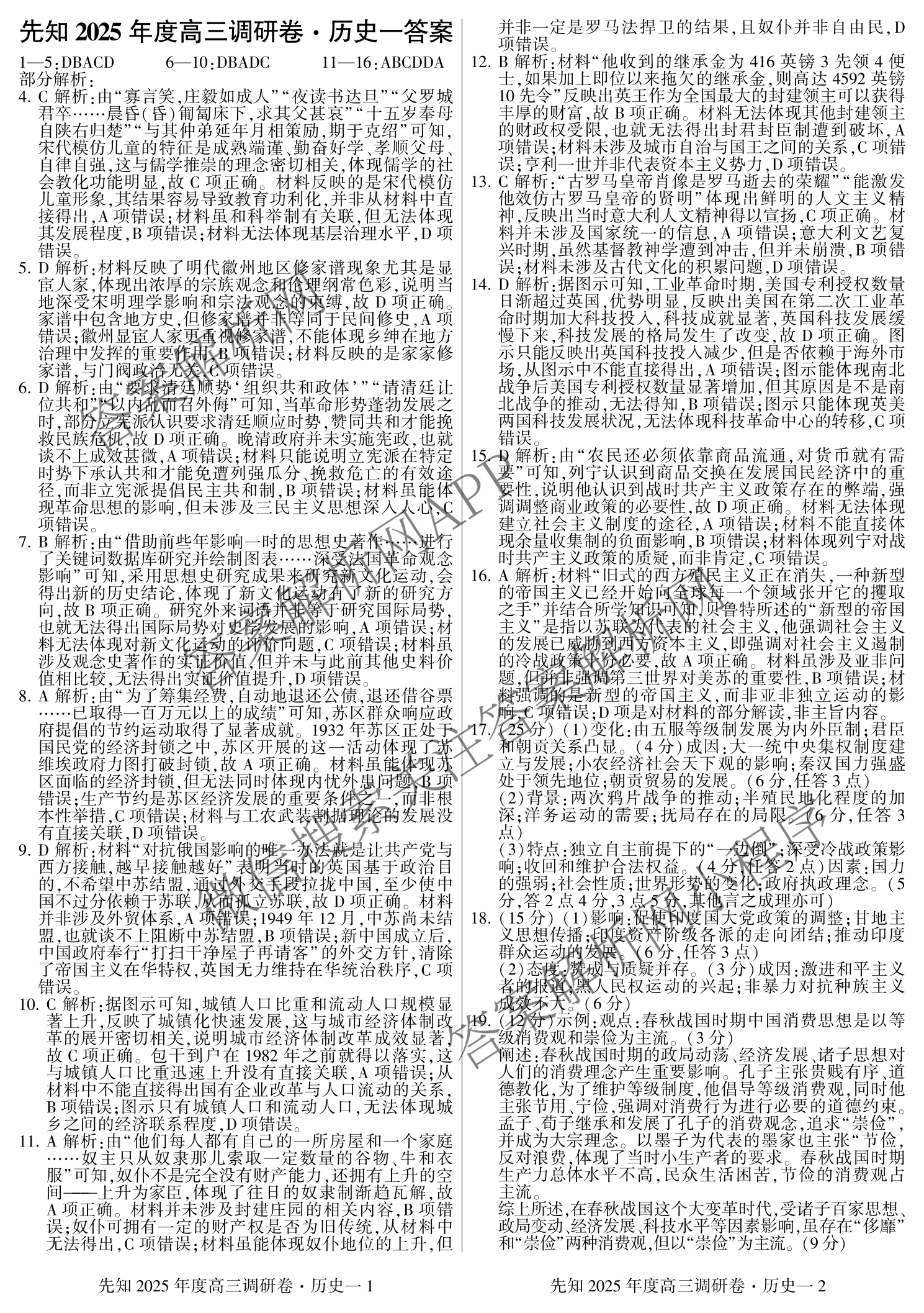 先知2025年度高三调研卷一历史答案,目前分科卷答案网已经汇总了先知2025年度高三调研卷一历史答案的各科答案和试卷,获取更多先知答案解析,请在关注本站。