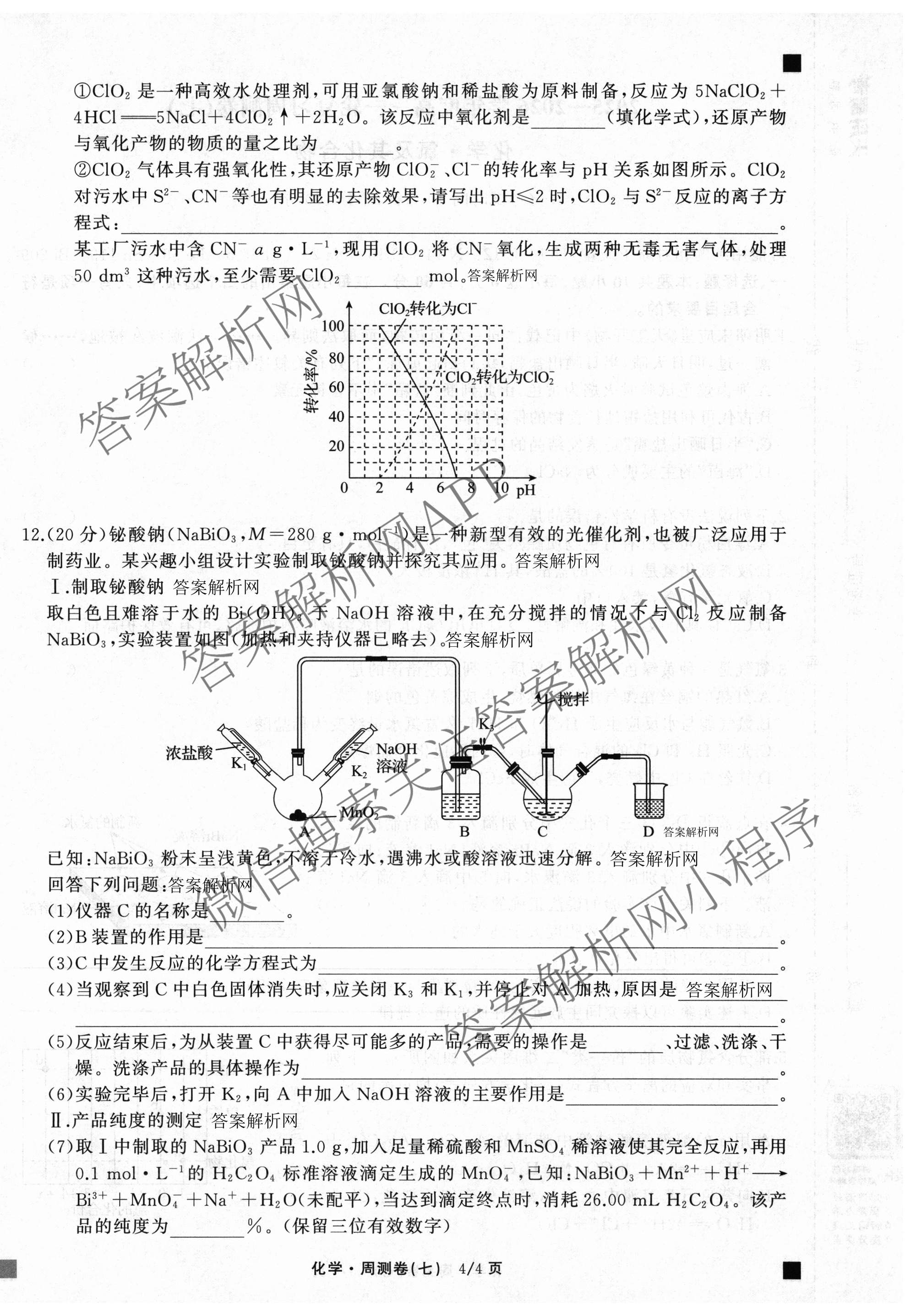 天舟高考衡中同卷·2025-2026学年度高三一轮复习周测卷(七)7化学(A)试题,目前分科卷答案网已经汇总了天舟高考衡中同卷·2025-2026学年度高三一轮复习周测卷(七)7化学(A)试题的各科答案和试卷,获取更多衡中同卷答案解析,请在关注本站。