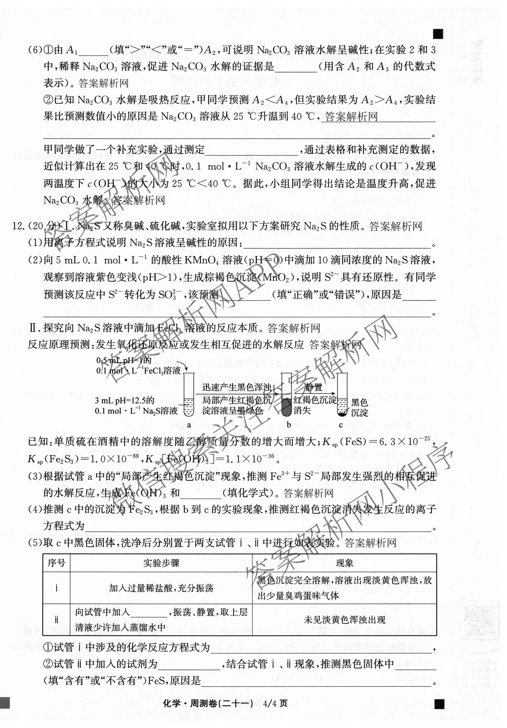衡中同卷2025-2026学年度高三一轮复习周测卷(二十一)21化学(A)试题