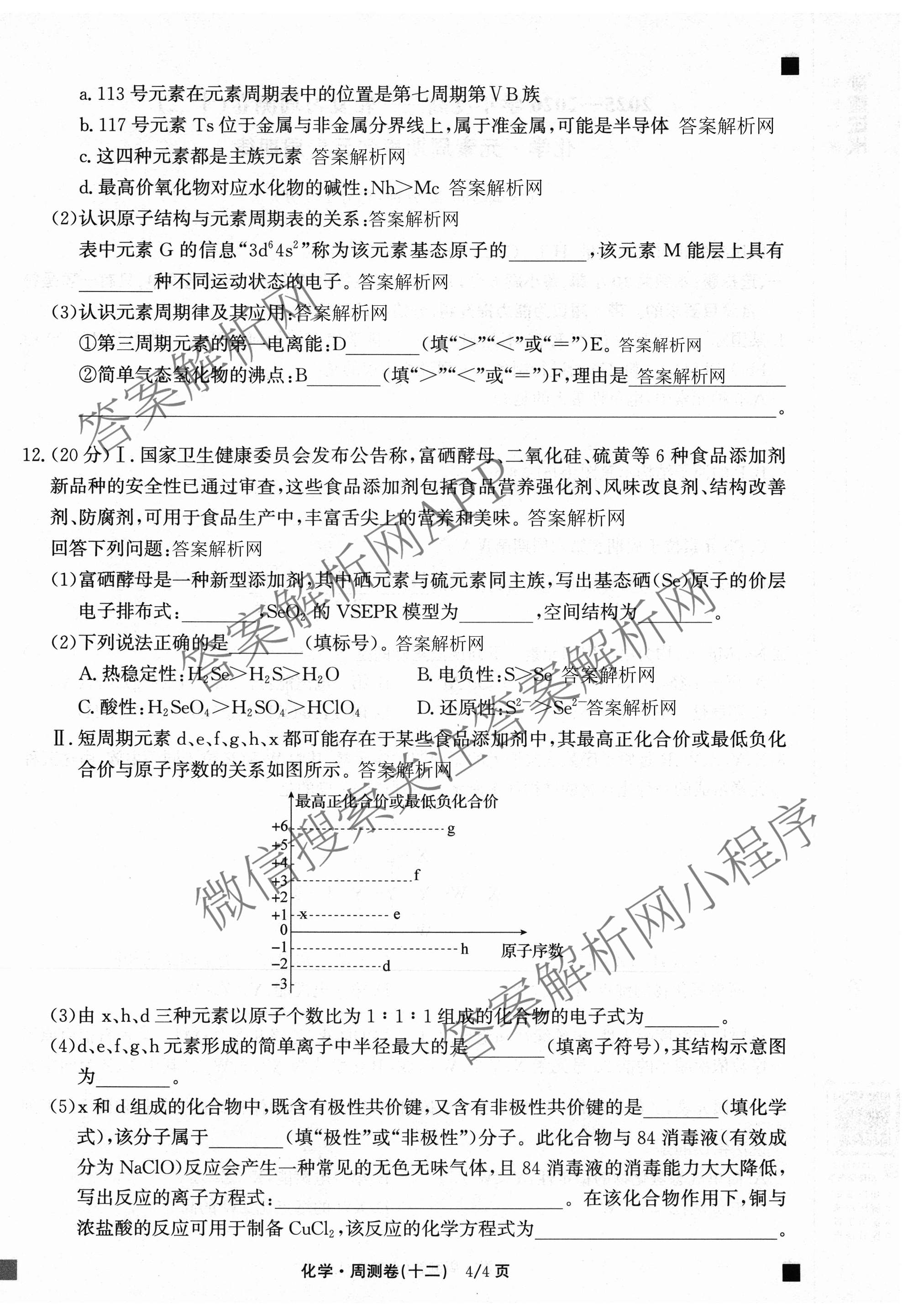 天舟高考衡中同卷·2025-2026学年度高三一轮复习周测卷(十二)12化学(A)试题,目前分科卷答案网已经汇总了天舟高考衡中同卷·2025-2026学年度高三一轮复习周测卷(十二)12化学(A)试题的各科答案和试卷,获取更多衡中同卷答案解析,请在关注本站。