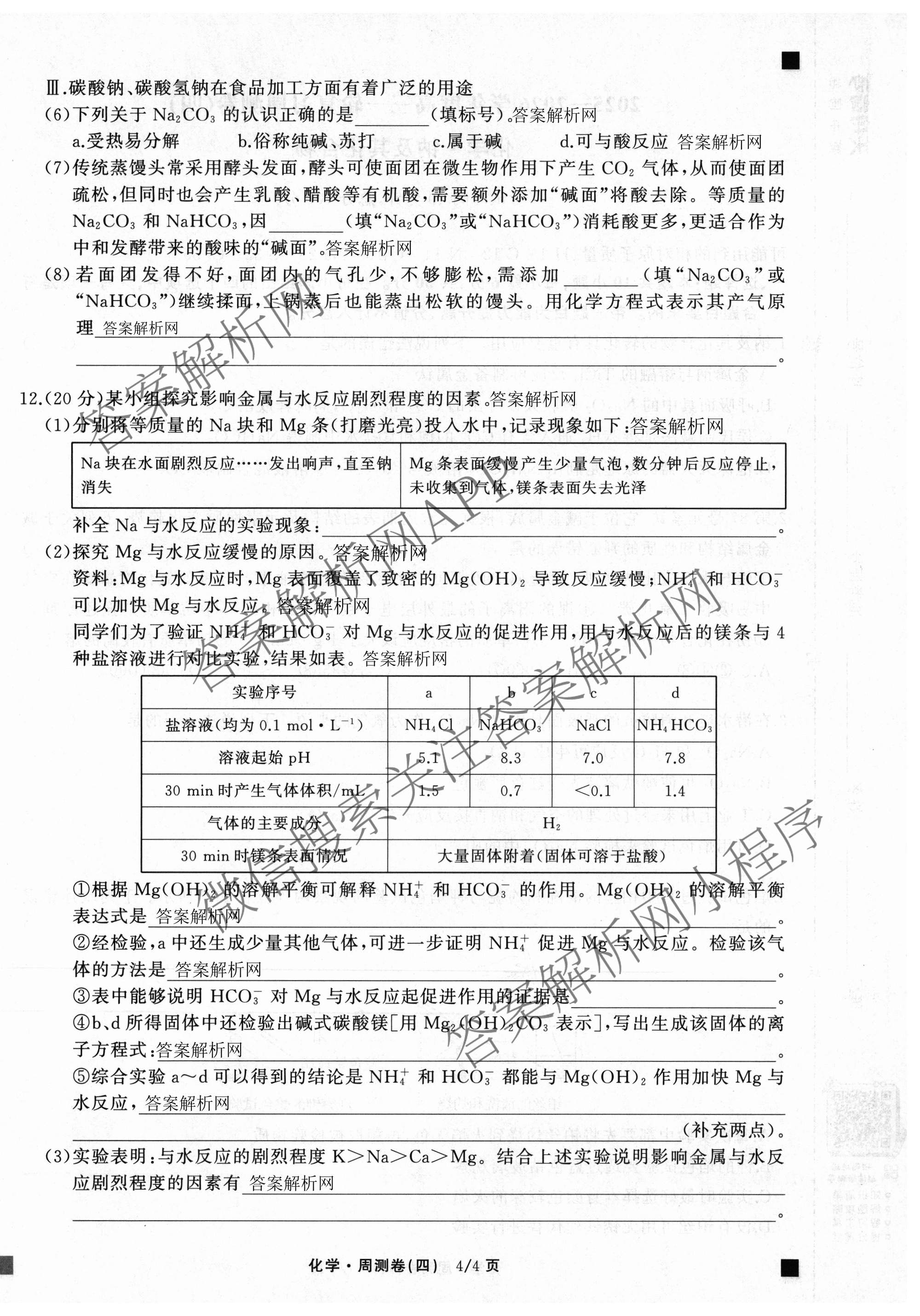 天舟高考衡中同卷·2025-2026学年度高三一轮复习周测卷(四)4化学(A)试题,目前分科卷答案网已经汇总了天舟高考衡中同卷·2025-2026学年度高三一轮复习周测卷(四)4化学(A)试题的各科答案和试卷,获取更多衡中同卷答案解析,请在关注本站。