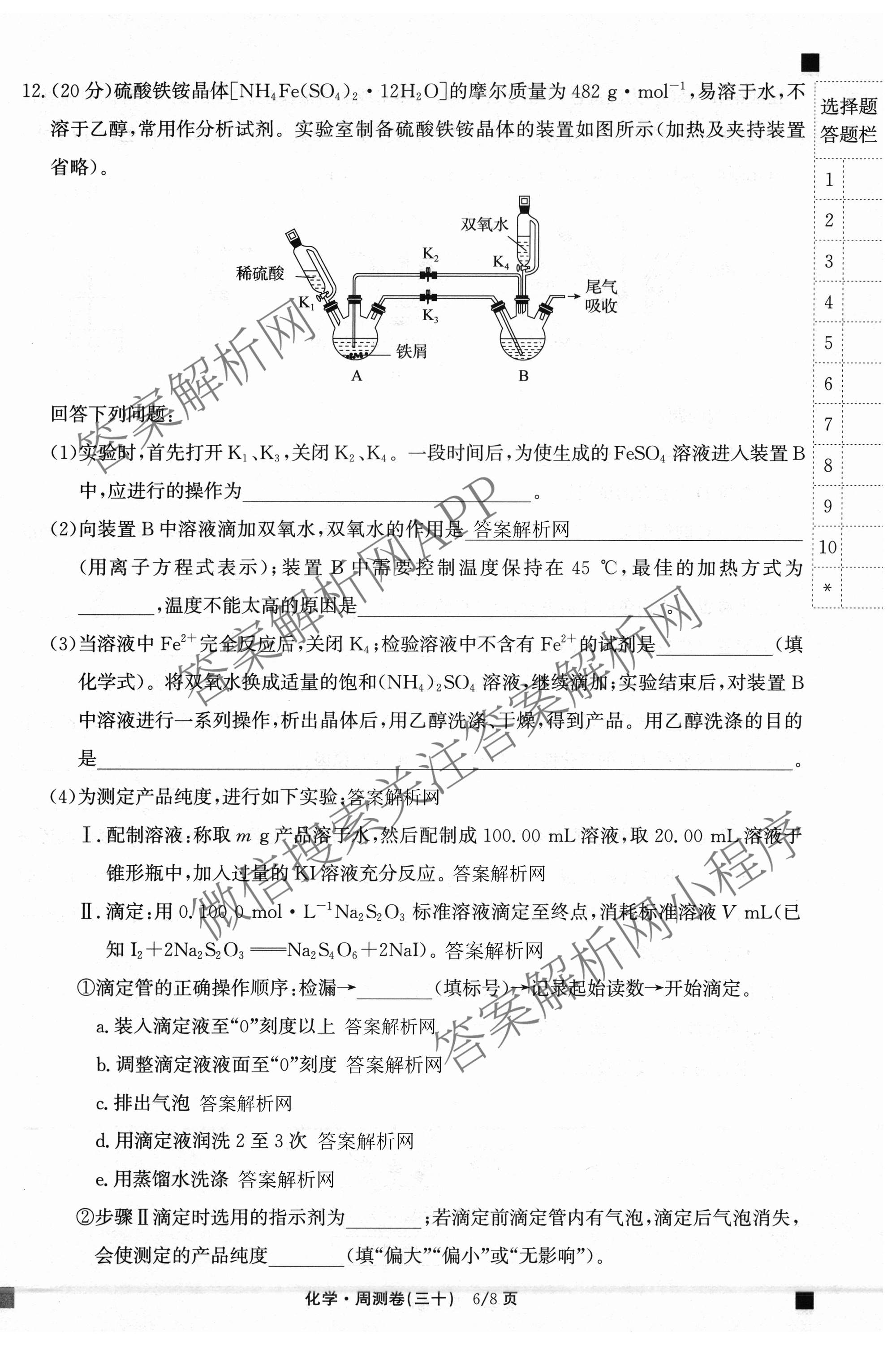 天舟高考衡中同卷·2025-2026学年度高三一轮复习周测卷(三十)30化学(A)试题,目前分科卷答案网已经汇总了天舟高考衡中同卷·2025-2026学年度高三一轮复习周测卷(三十)30化学(A)试题的各科答案和试卷,获取更多衡中同卷答案解析,请在关注本站。