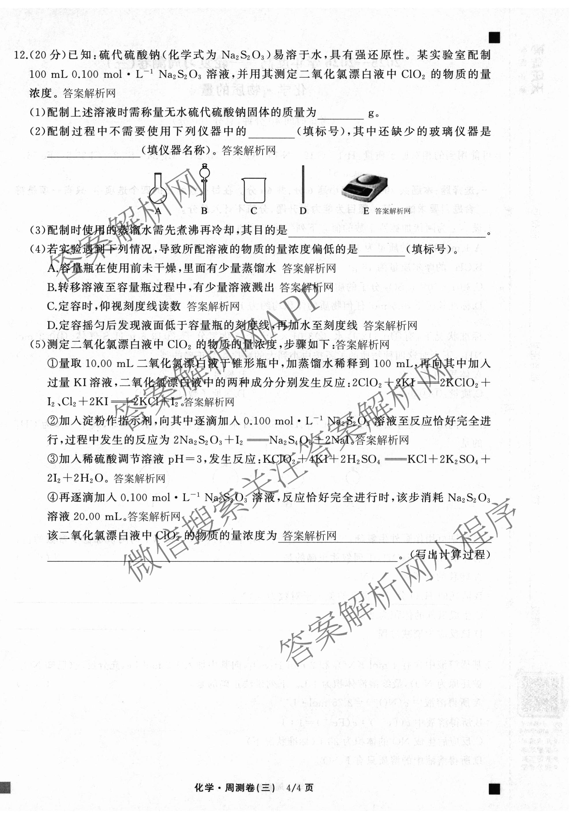 天舟高考衡中同卷·2025-2026学年度高三一轮复习周测卷(三)3化学(A)试题,目前分科卷答案网已经汇总了天舟高考衡中同卷·2025-2026学年度高三一轮复习周测卷(三)3化学(A)试题的各科答案和试卷,获取更多衡中同卷答案解析,请在关注本站。