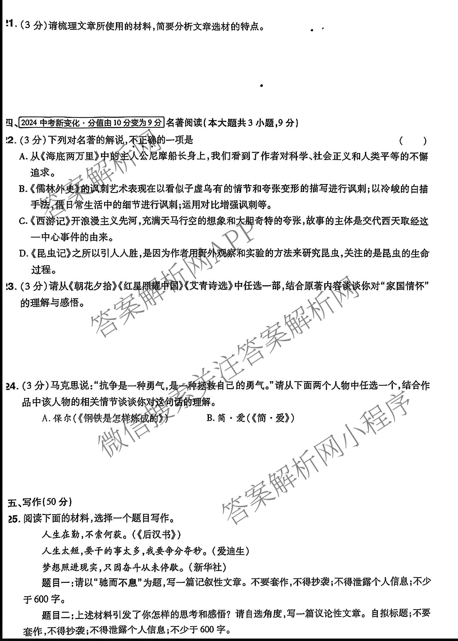 2025年江西省中考命题信息原创卷(四)语文试题,目前分科卷答案网已经汇总了2025年江西省中考命题信息原创卷(四)语文试题的各科答案和试卷,获取更多地方模拟答案解析,请在关注本站。