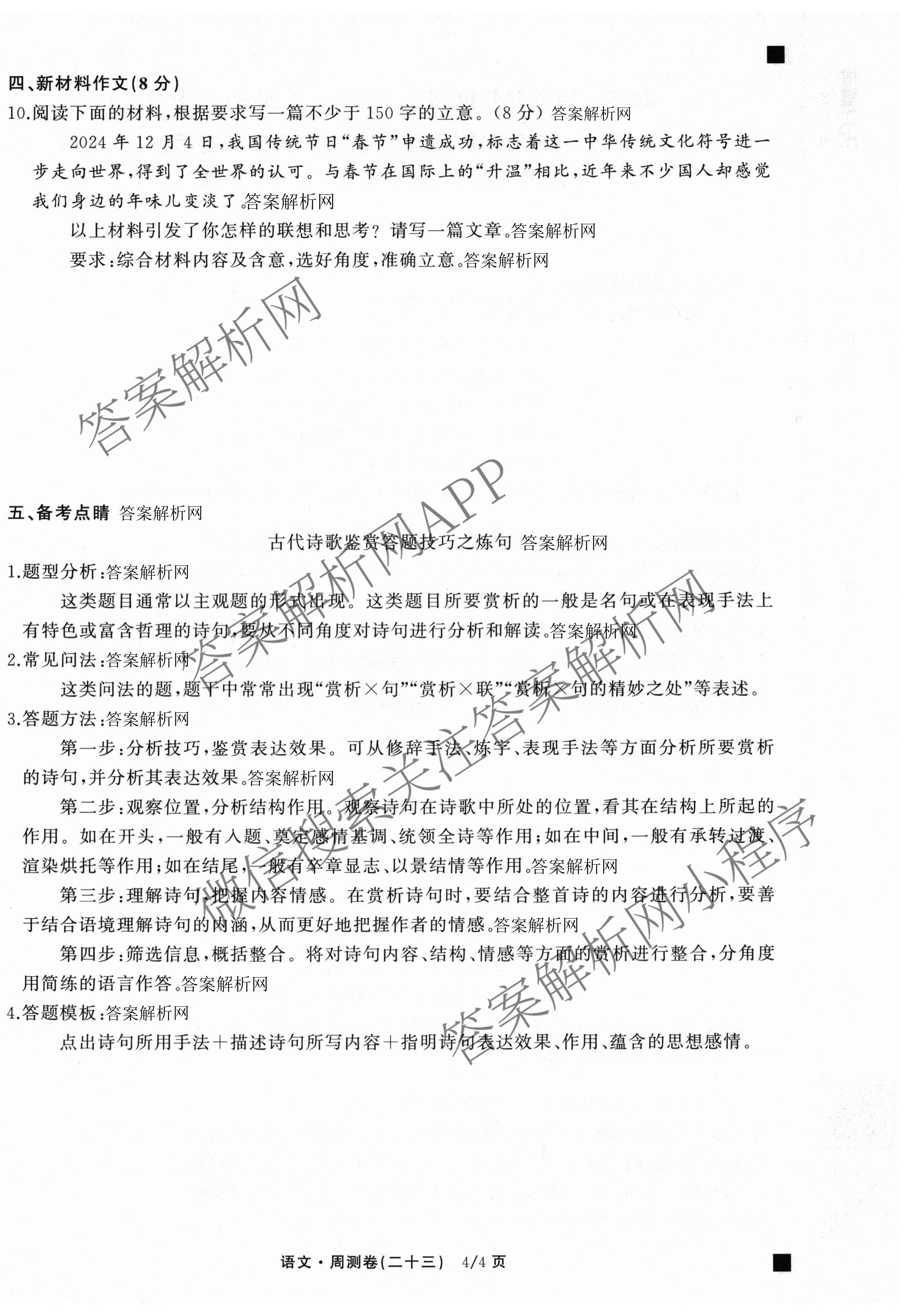 天舟高考衡中同卷·2025-2026学年度高三一轮复习周测卷(二十三)23语文(小题量)试题,目前分科卷答案网已经汇总了天舟高考衡中同卷·2025-2026学年度高三一轮复习周测卷(二十三)23语文(小题量)试题的各科答案和试卷,获取更多衡中同卷答案解析,请在关注本站。