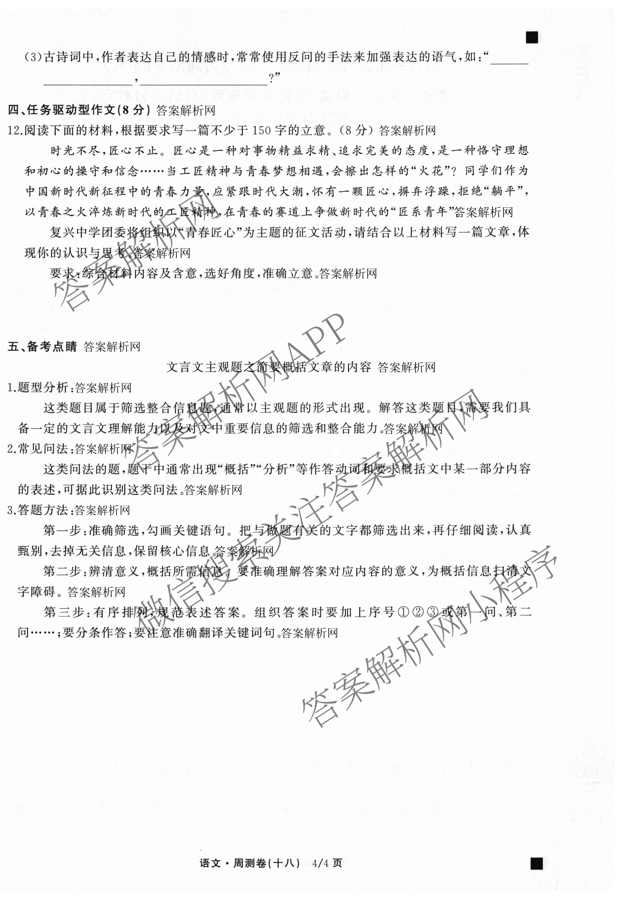 天舟高考衡中同卷·2025-2026学年度高三一轮复习周测卷(十八)18语文(小题量)试题,目前分科卷答案网已经汇总了天舟高考衡中同卷·2025-2026学年度高三一轮复习周测卷(十八)18语文(小题量)试题的各科答案和试卷,获取更多衡中同卷答案解析,请在关注本站。
