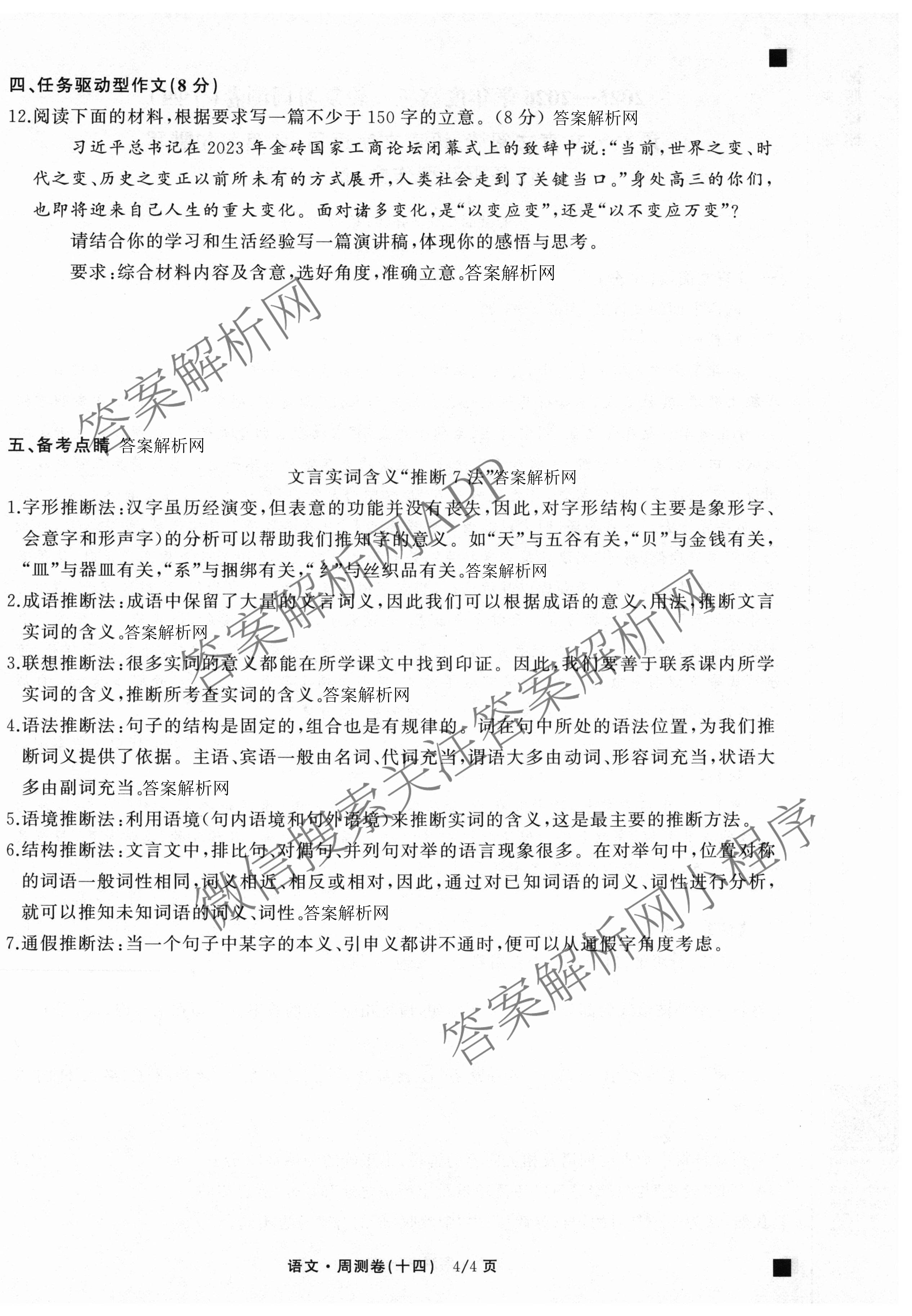 天舟高考衡中同卷·2025-2026学年度高三一轮复习周测卷(十四)14语文(小题量)试题,目前分科卷答案网已经汇总了天舟高考衡中同卷·2025-2026学年度高三一轮复习周测卷(十四)14语文(小题量)试题的各科答案和试卷,获取更多衡中同卷答案解析,请在关注本站。