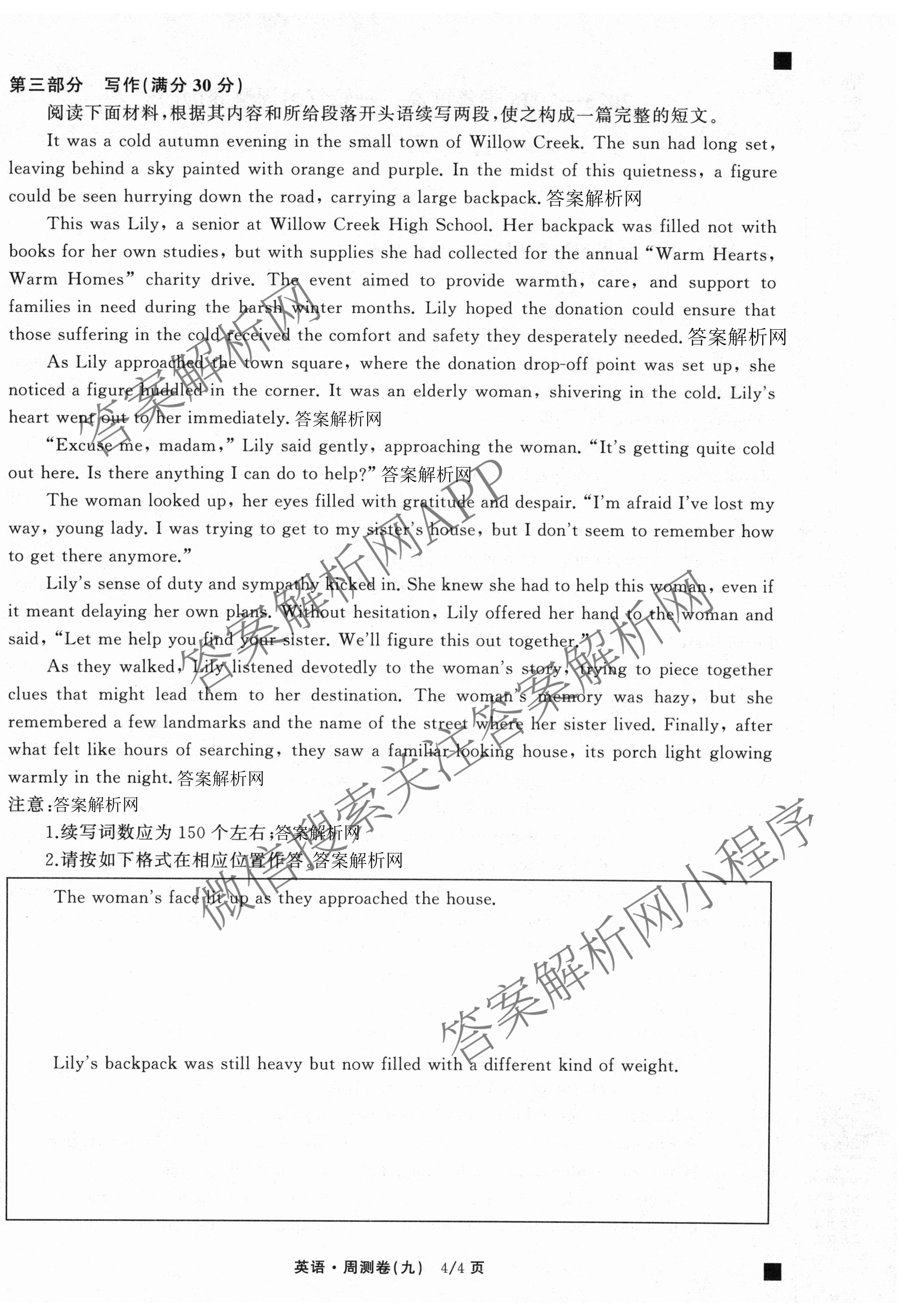天舟高考衡中同卷2025-2026学年度高三一轮复习周测卷(九)9英语(小题量)试题