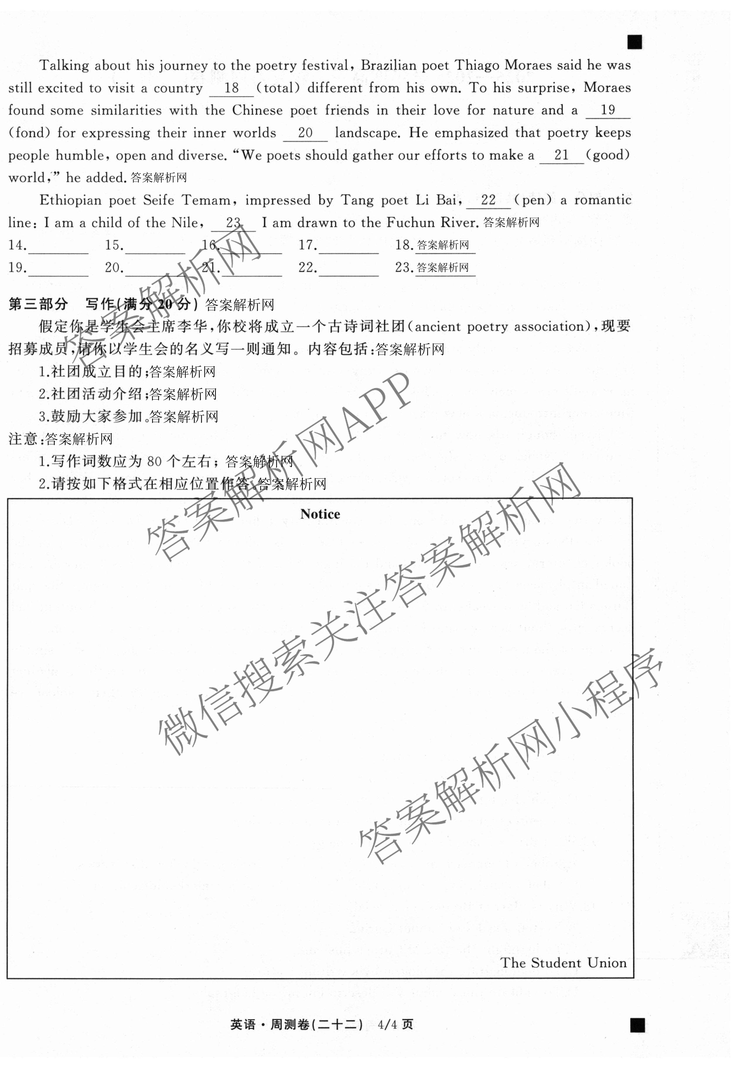 天舟高考衡中同卷·2025-2026学年度高三一轮复习周测卷(二十二)22英语(小题量)试题,目前分科卷答案网已经汇总了天舟高考衡中同卷·2025-2026学年度高三一轮复习周测卷(二十二)22英语(小题量)试题的各科答案和试卷,获取更多衡中同卷答案解析,请在关注本站。