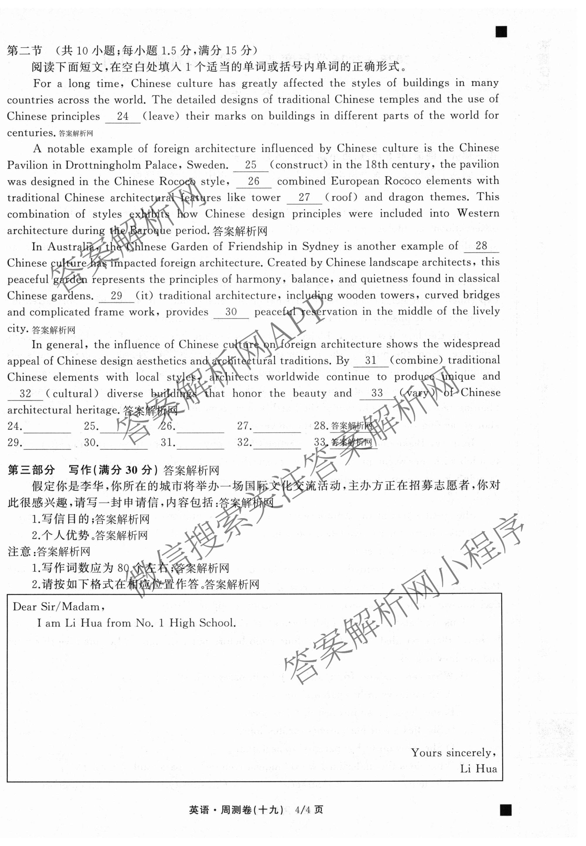 天舟高考衡中同卷·2025-2026学年度高三一轮复习周测卷(十九)19英语(小题量)试题,目前分科卷答案网已经汇总了天舟高考衡中同卷·2025-2026学年度高三一轮复习周测卷(十九)19英语(小题量)试题的各科答案和试卷,获取更多衡中同卷答案解析,请在关注本站。
