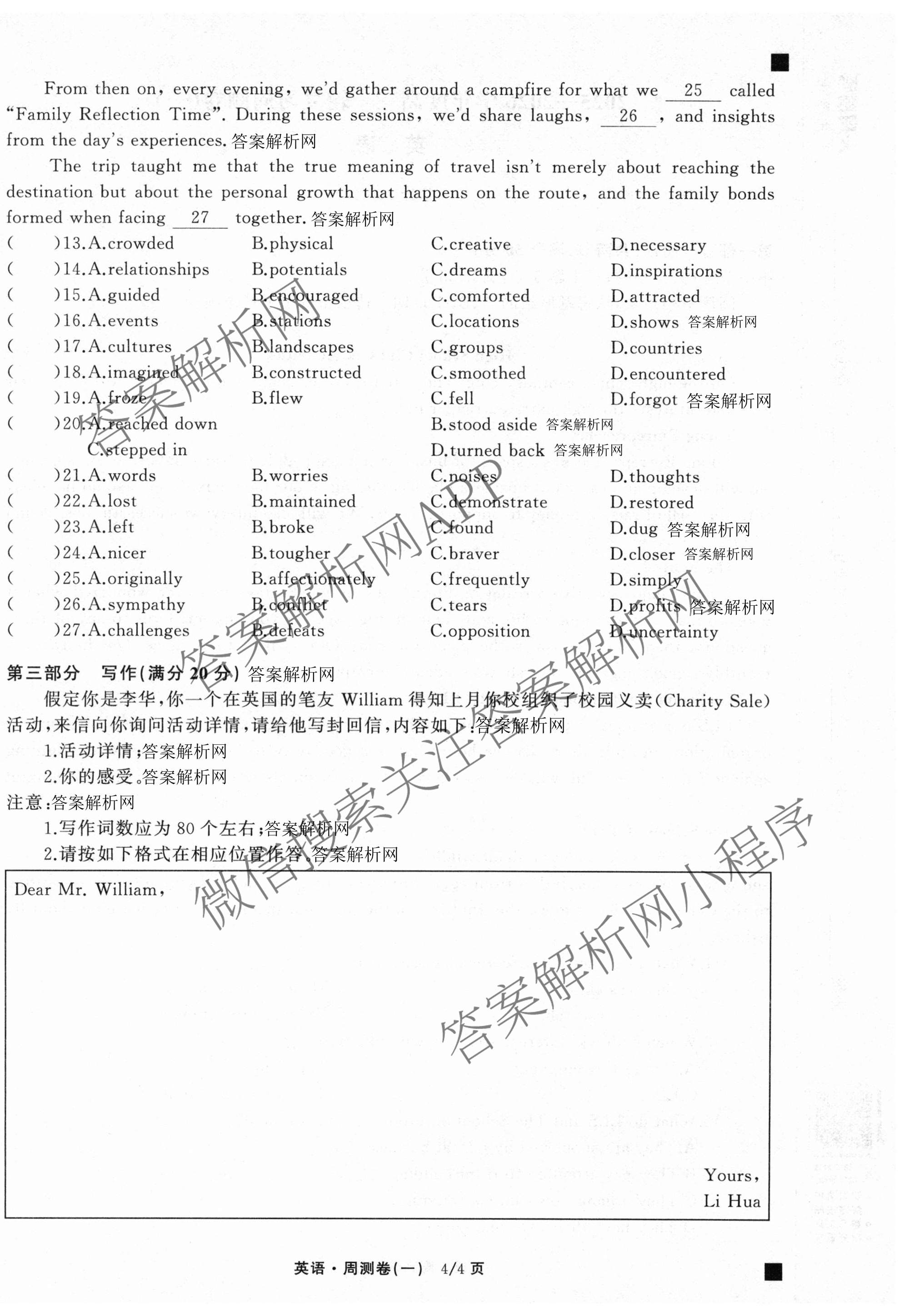 天舟高考衡中同卷·2025-2026学年度高三一轮复习周测卷(一)1英语(小题量)试题,目前分科卷答案网已经汇总了天舟高考衡中同卷·2025-2026学年度高三一轮复习周测卷(一)1英语(小题量)试题的各科答案和试卷,获取更多衡中同卷答案解析,请在关注本站。