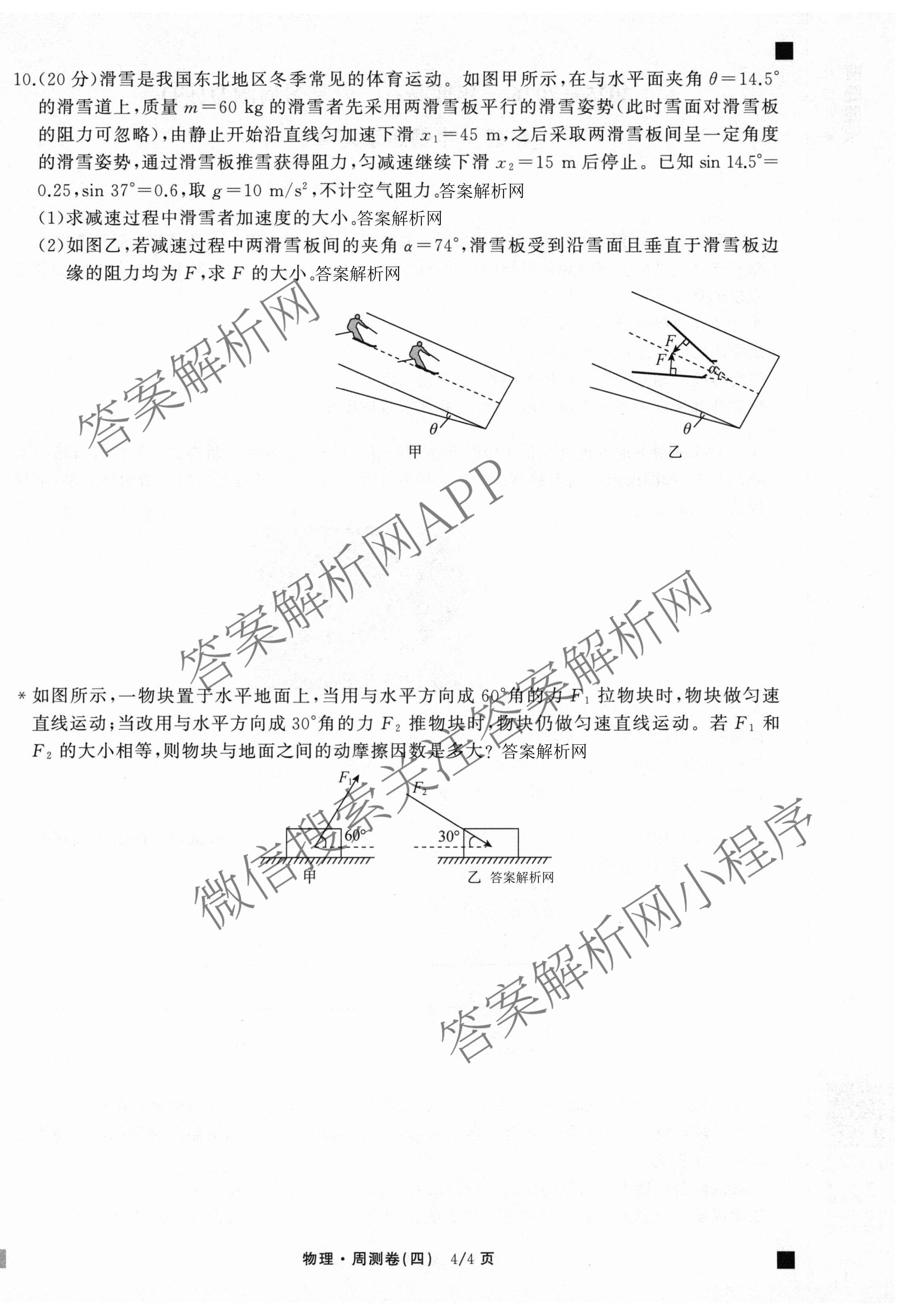衡中同卷2025-2026学年度高三一轮复习周测卷(四)4物理(A)试题
