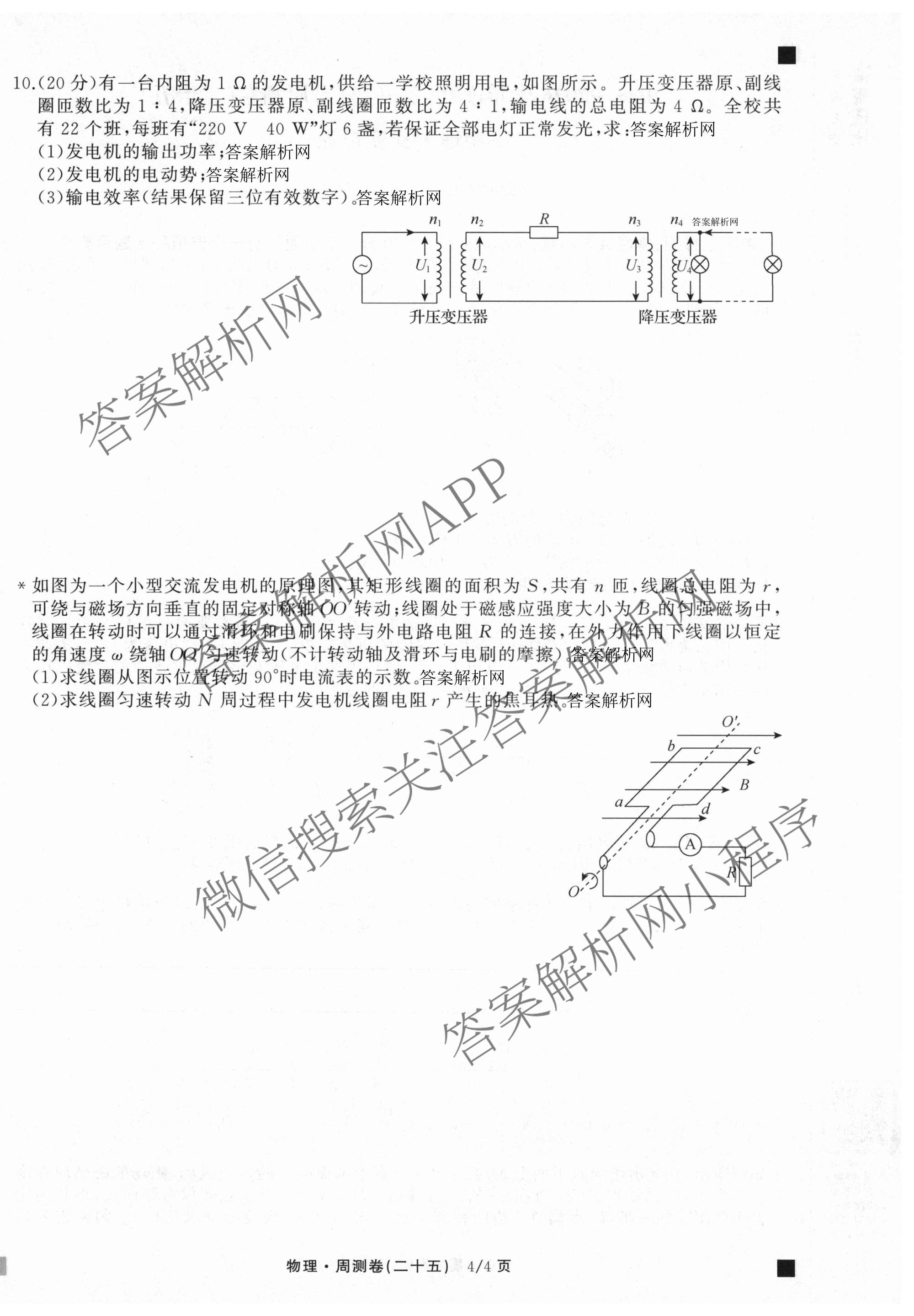 衡中同卷2025-2026学年度高三一轮复习周测卷(二十五)25物理(A)试题