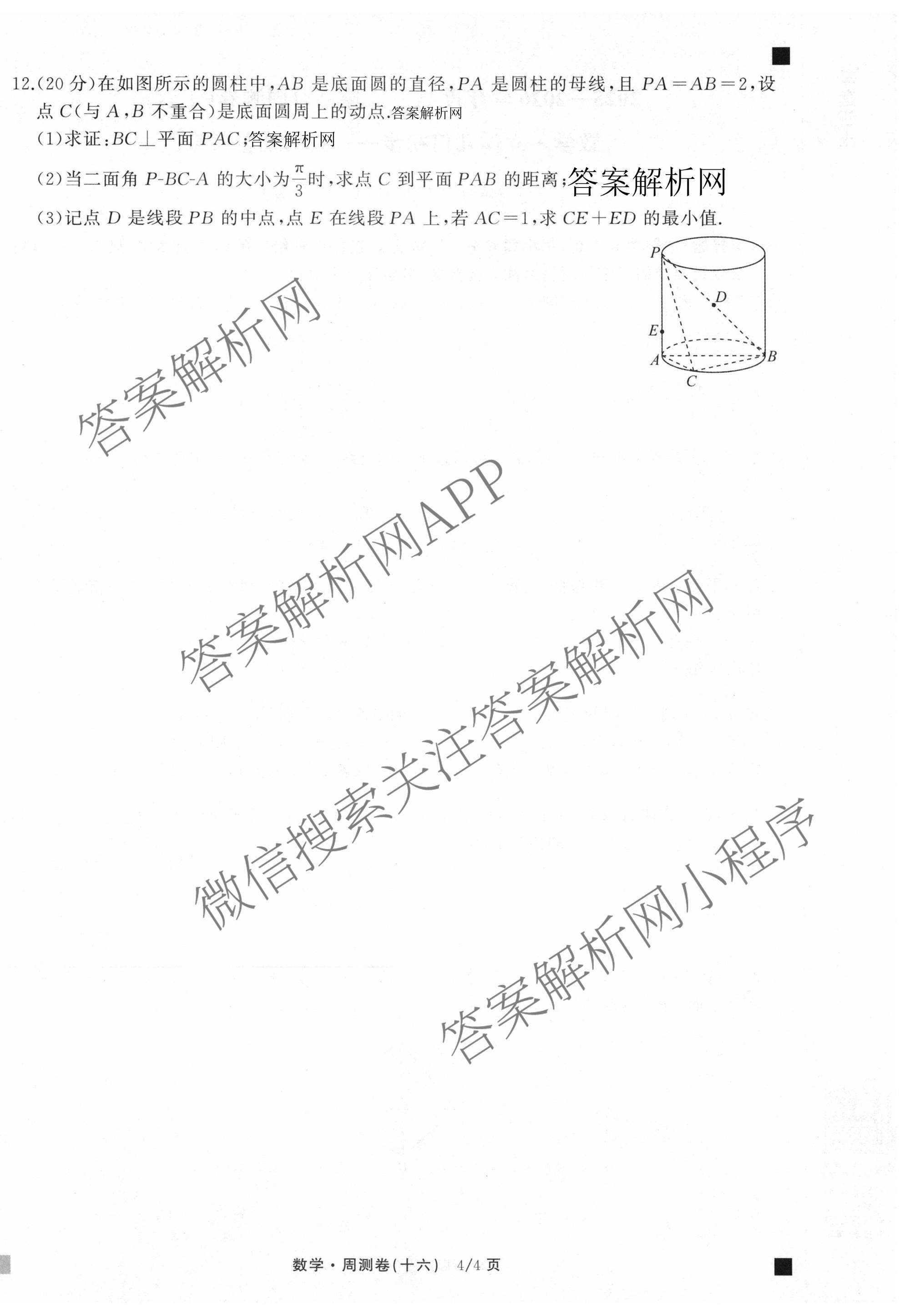 天舟高考衡中同卷·2025-2026学年度高三一轮复习周测卷(十六)16数学(A)试题,目前分科卷答案网已经汇总了天舟高考衡中同卷·2025-2026学年度高三一轮复习周测卷(十六)16数学(A)试题的各科答案和试卷,获取更多衡中同卷答案解析,请在关注本站。