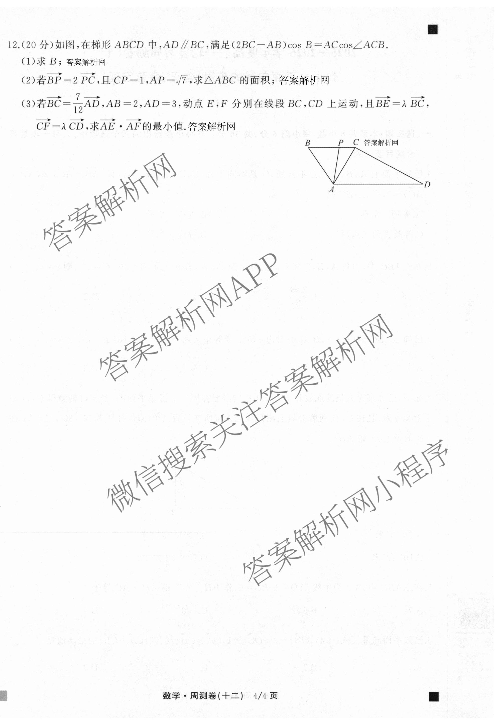 天舟高考衡中同卷·2025-2026学年度高三一轮复习周测卷(十二)12数学(A)试题,目前分科卷答案网已经汇总了天舟高考衡中同卷·2025-2026学年度高三一轮复习周测卷(十二)12数学(A)试题的各科答案和试卷,获取更多衡中同卷答案解析,请在关注本站。