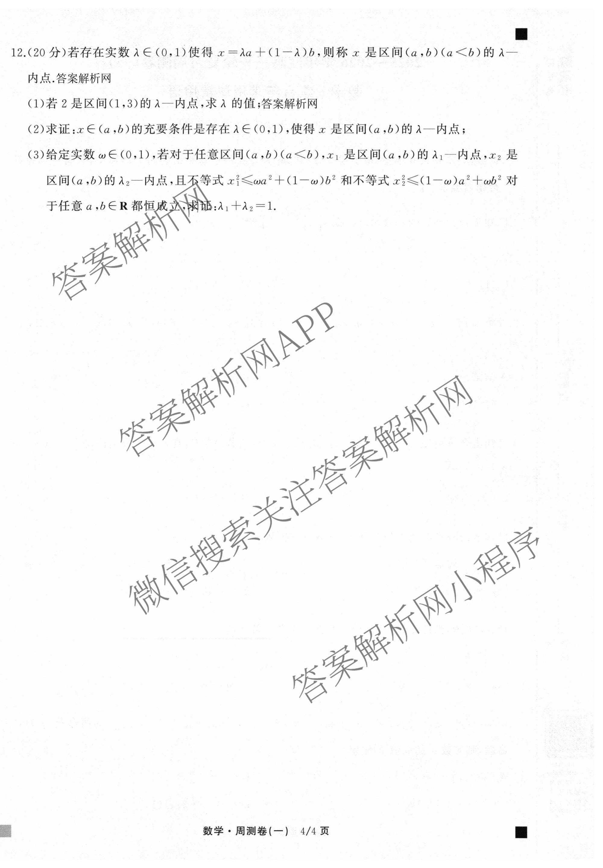 天舟高考衡中同卷·2025-2026学年度高三一轮复习周测卷(一)1数学(A)试题,目前分科卷答案网已经汇总了天舟高考衡中同卷·2025-2026学年度高三一轮复习周测卷(一)1数学(A)试题的各科答案和试卷,获取更多衡中同卷答案解析,请在关注本站。