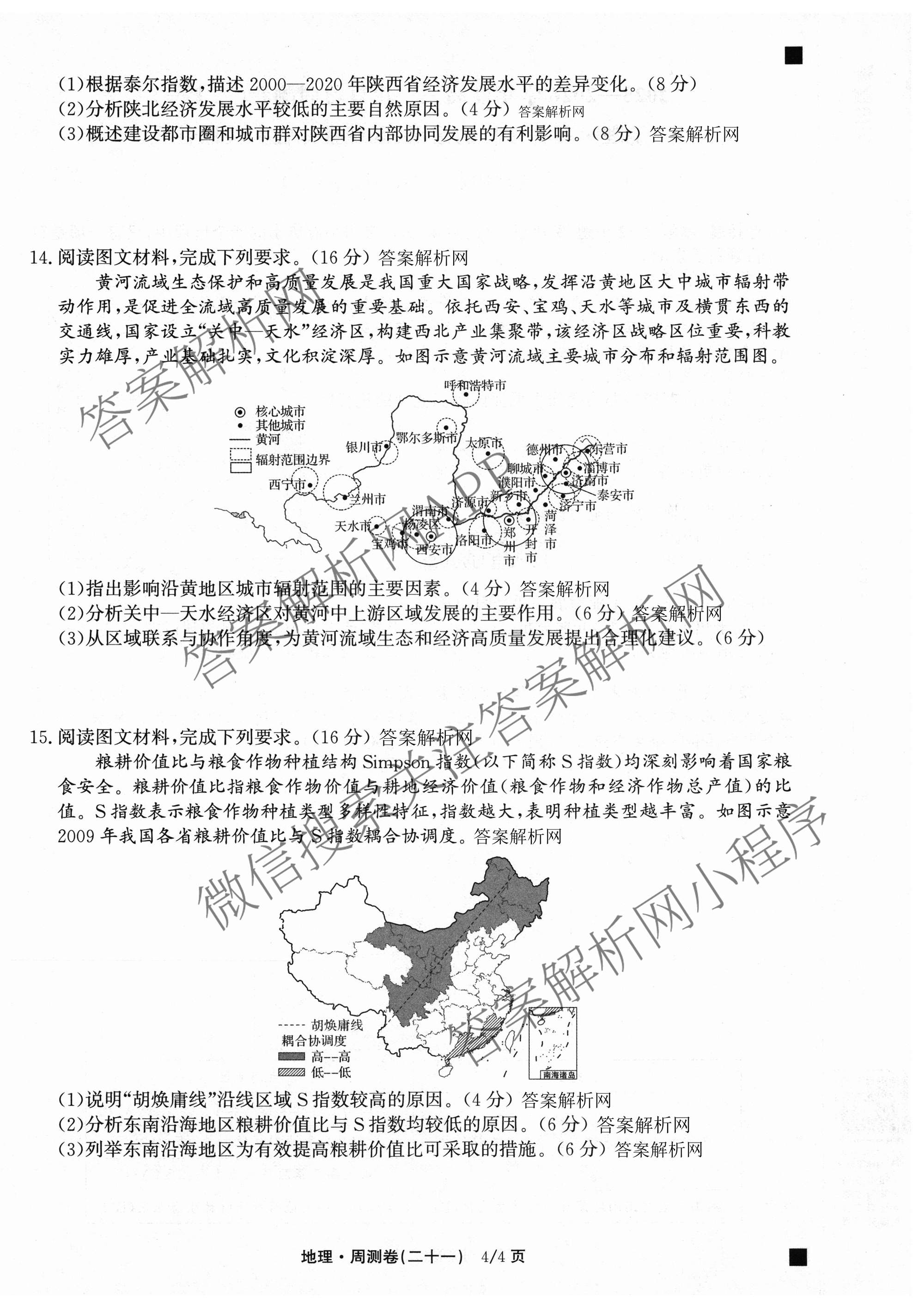 衡中同卷2025-2026学年度高三一轮复习周测卷(二十一)21地理试题