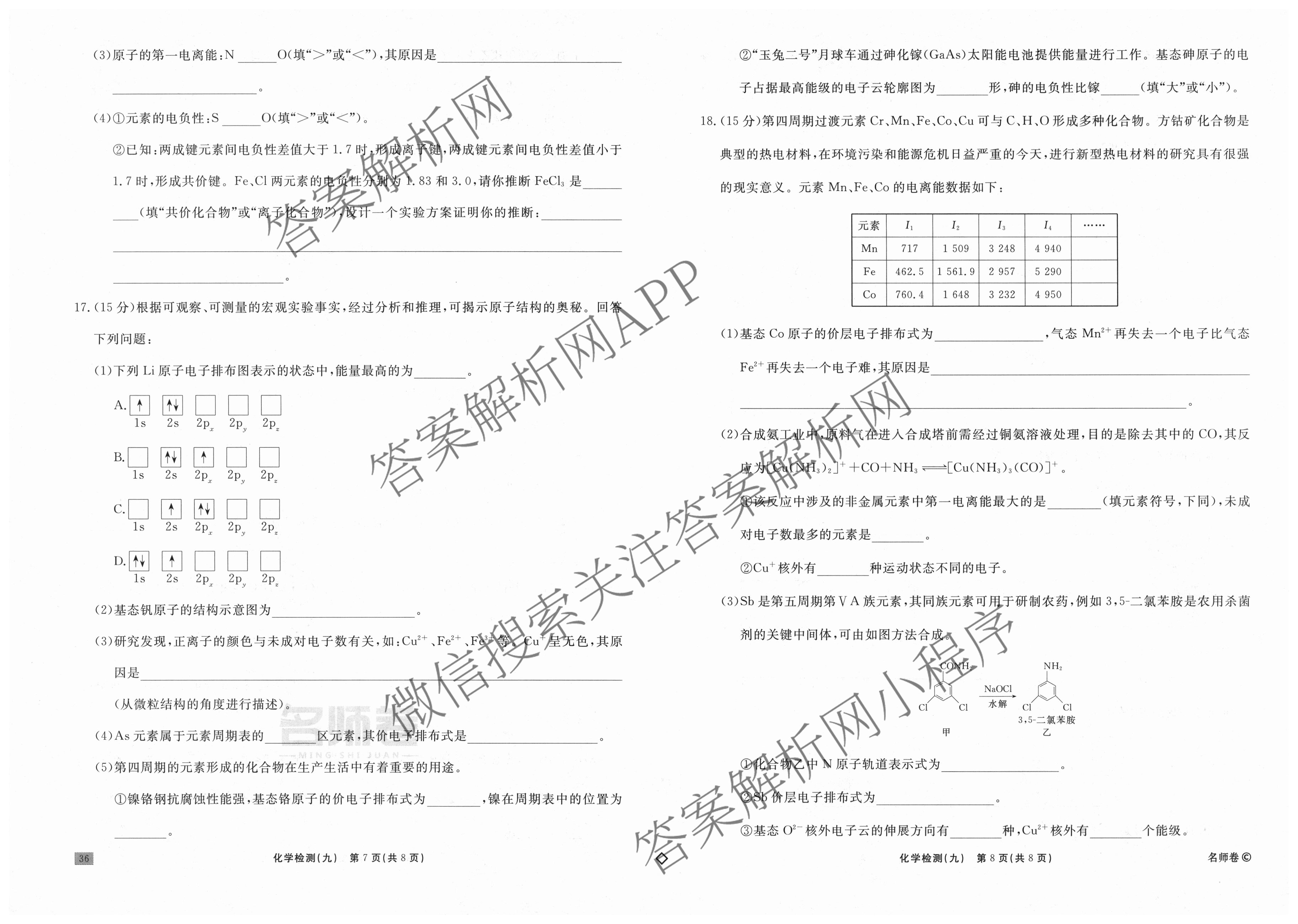 衡水名师卷·2025-2026学年度高三一轮复习单元检测卷·化学(空心菱形)·检测(九)9试题,目前分科卷答案网已经汇总了衡水名师卷·2025-2026学年度高三一轮复习单元检测卷·化学(空心菱形)·检测(九)9试题的各科答案和试卷,获取更多衡水名师卷答案解析,请在关注本站。
