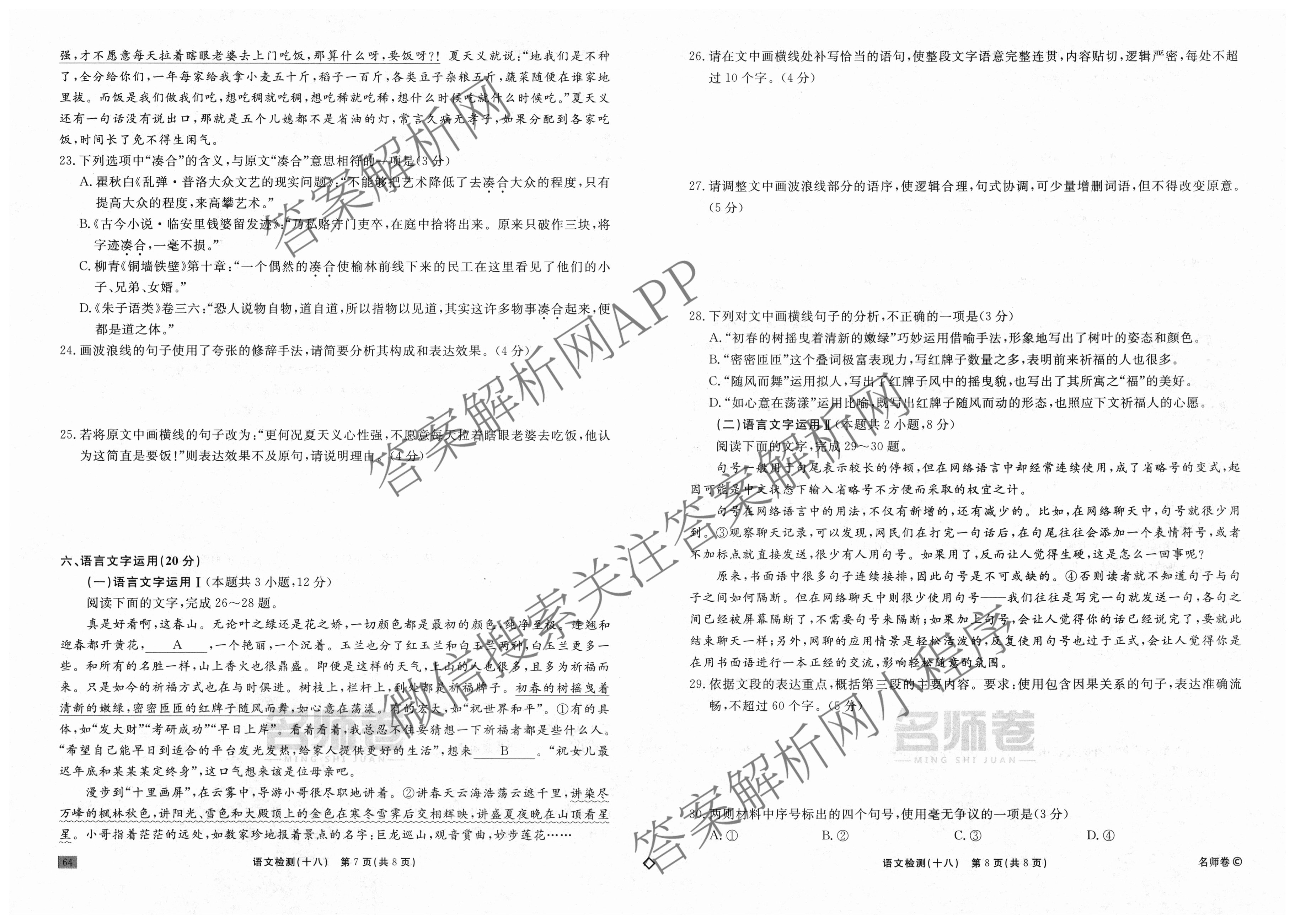 衡水名师卷·2025-2026学年度高三一轮复习单元检测卷·语文(空心菱形)·检测(十八)18试题,目前分科卷答案网已经汇总了衡水名师卷·2025-2026学年度高三一轮复习单元检测卷·语文(空心菱形)·检测(十八)18试题的各科答案和试卷,获取更多衡水名师卷答案解析,请在关注本站。