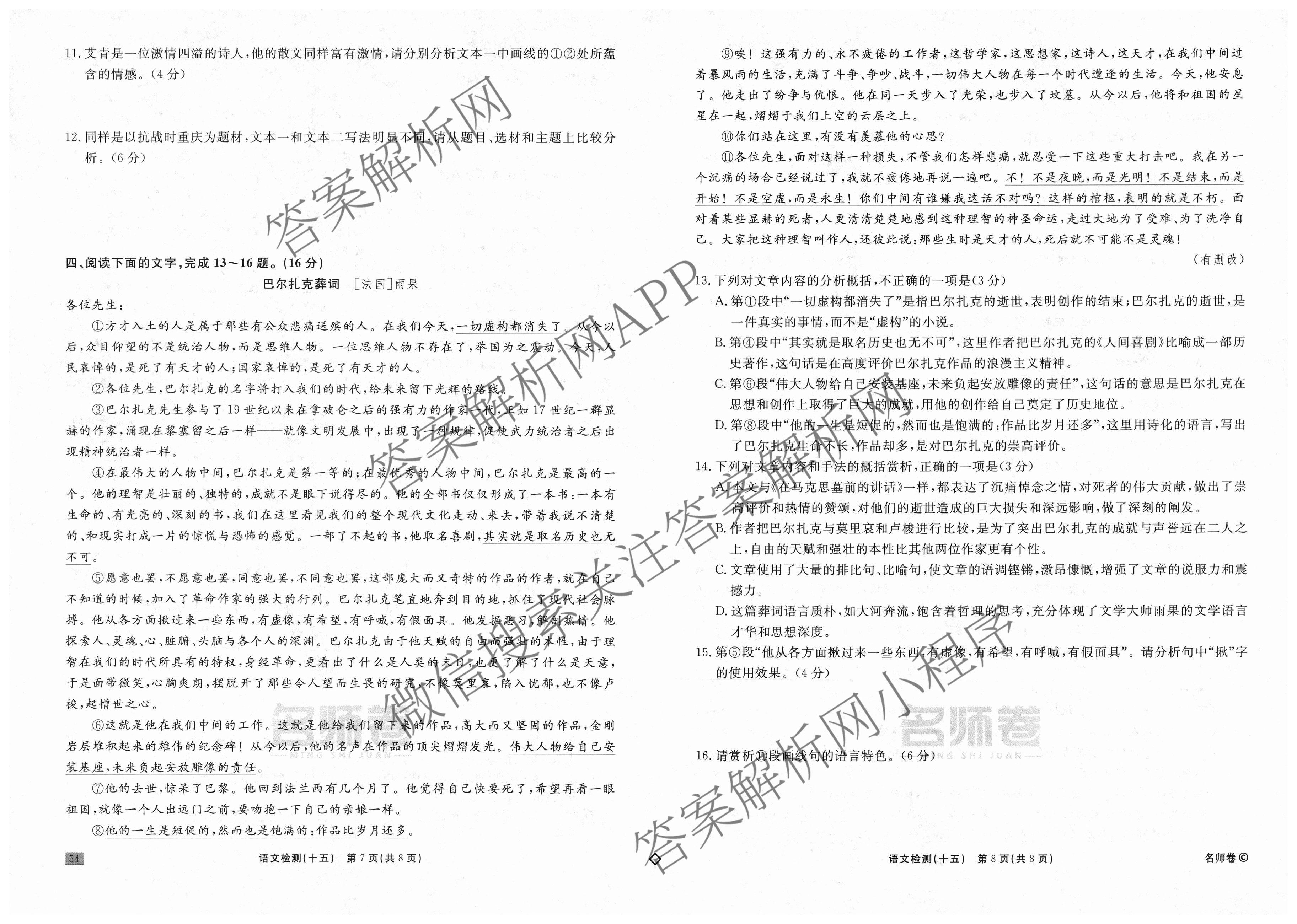 衡水名师卷·2025-2026学年度高三一轮复习单元检测卷·语文(空心菱形)·检测(十五)15试题,目前分科卷答案网已经汇总了衡水名师卷·2025-2026学年度高三一轮复习单元检测卷·语文(空心菱形)·检测(十五)15试题的各科答案和试卷,获取更多衡水名师卷答案解析,请在关注本站。