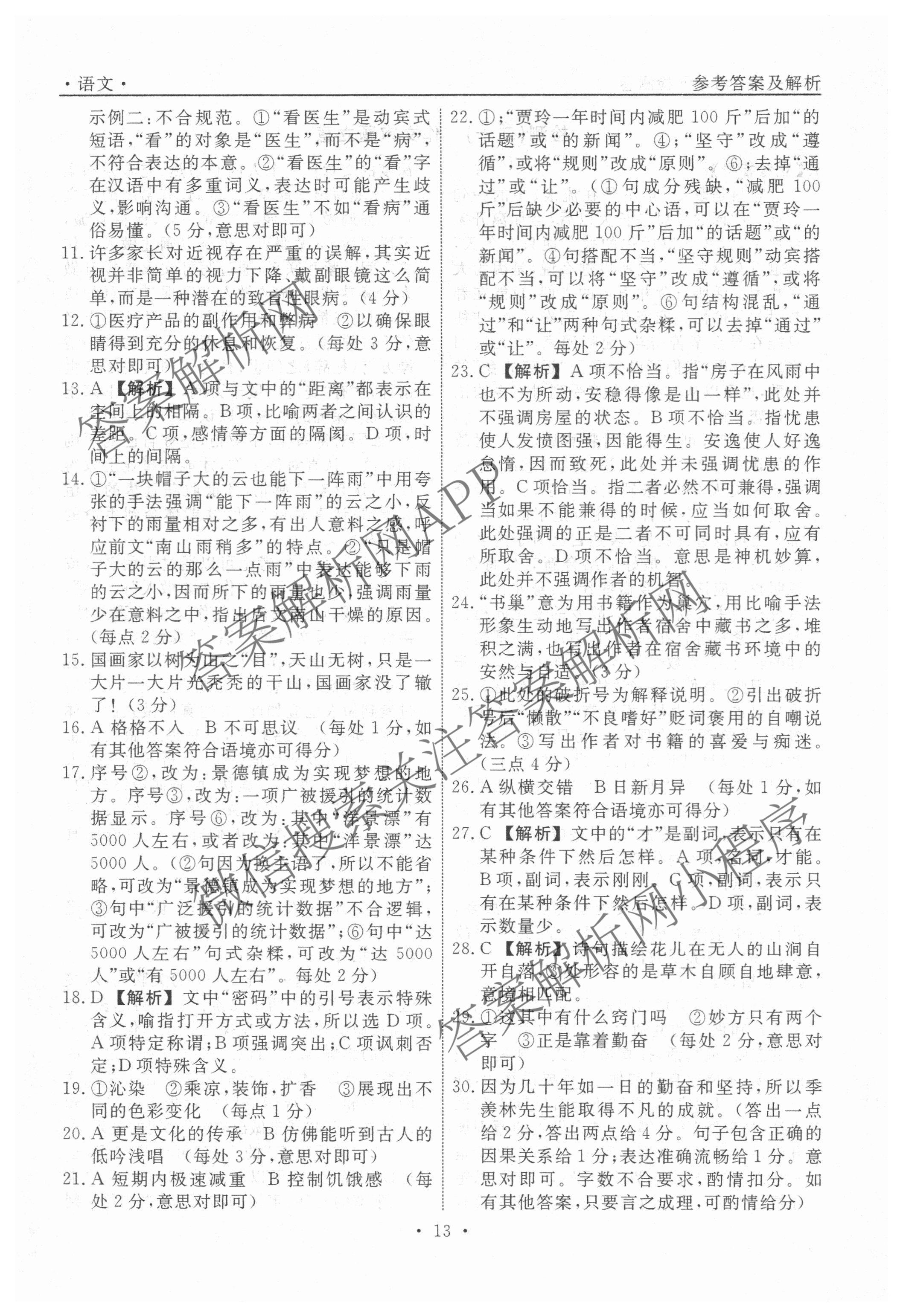 衡水名师卷2025-2026学年度高三一轮复习单元检测卷语文(空心菱形)检测(十九)19答案