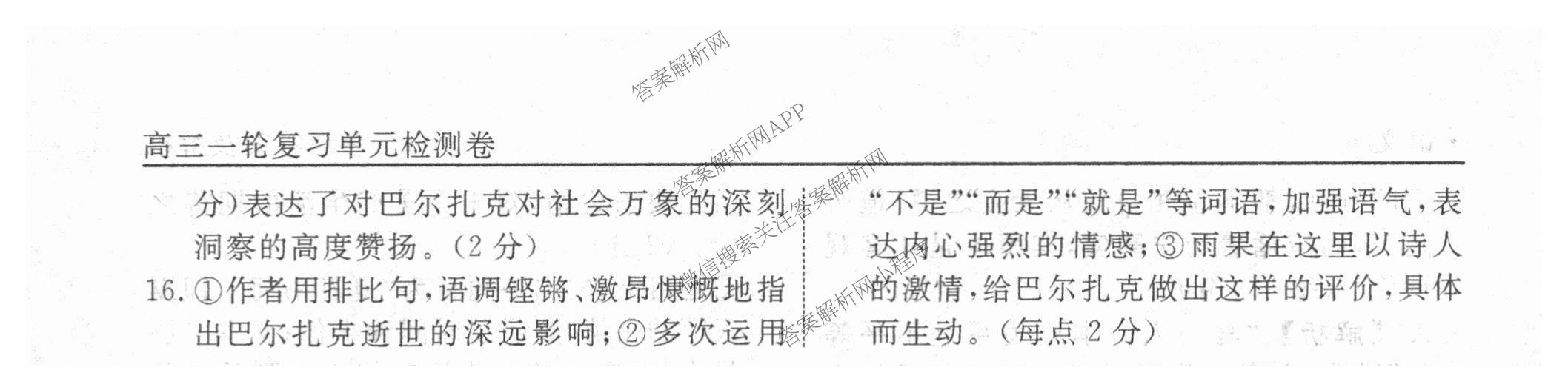衡水名师卷·2025-2026学年度高三一轮复习单元检测卷·语文(空心菱形)·检测(十五)15答案,目前分科卷答案网已经汇总了衡水名师卷·2025-2026学年度高三一轮复习单元检测卷·语文(空心菱形)·检测(十五)15答案的各科答案和试卷,获取更多衡水名师卷答案解析,请在关注本站。