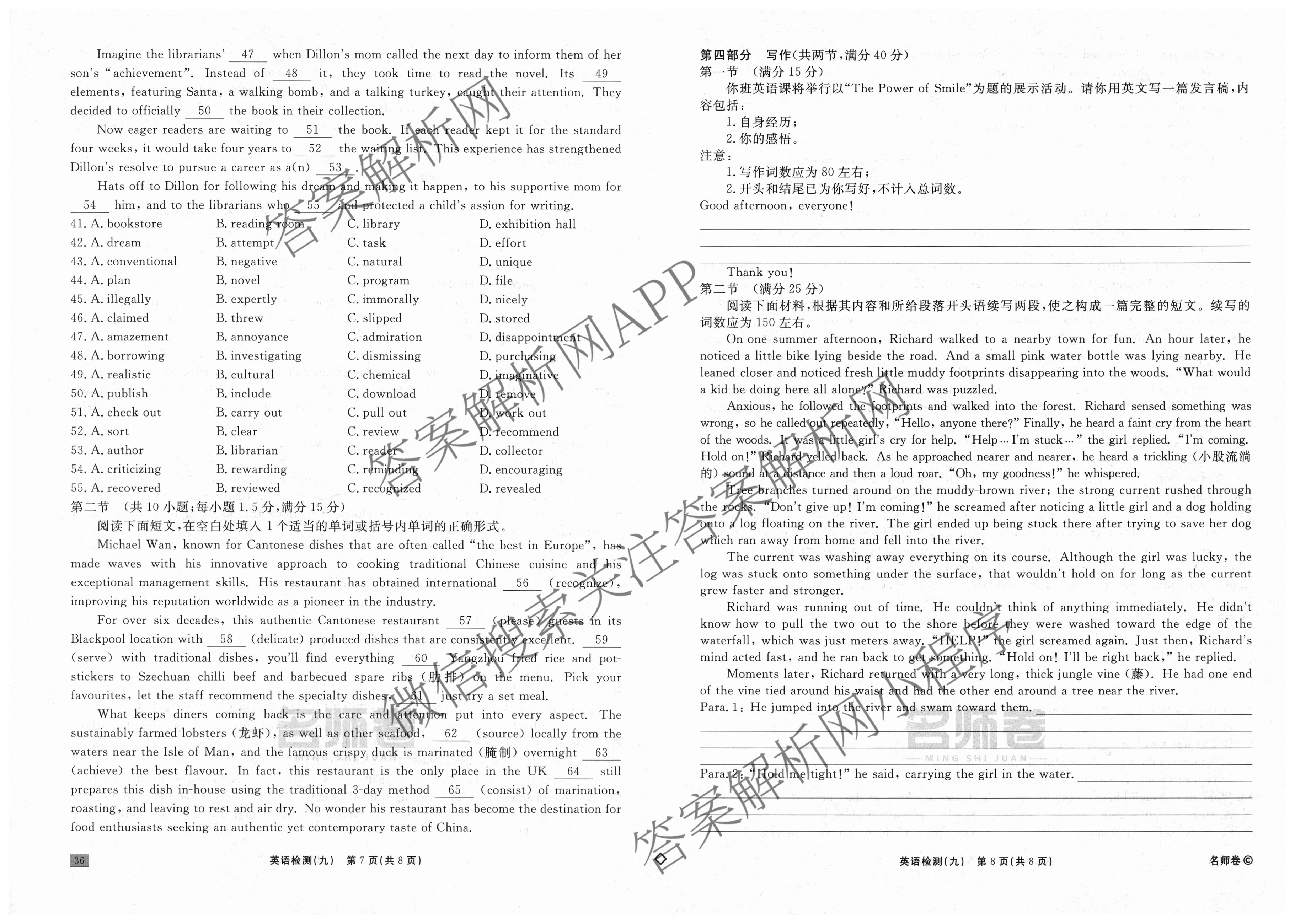 衡水名师卷·2025-2026学年度高三一轮复习单元检测卷·英语(空心菱形)·检测(九)9试题,目前分科卷答案网已经汇总了衡水名师卷·2025-2026学年度高三一轮复习单元检测卷·英语(空心菱形)·检测(九)9试题的各科答案和试卷,获取更多衡水名师卷答案解析,请在关注本站。