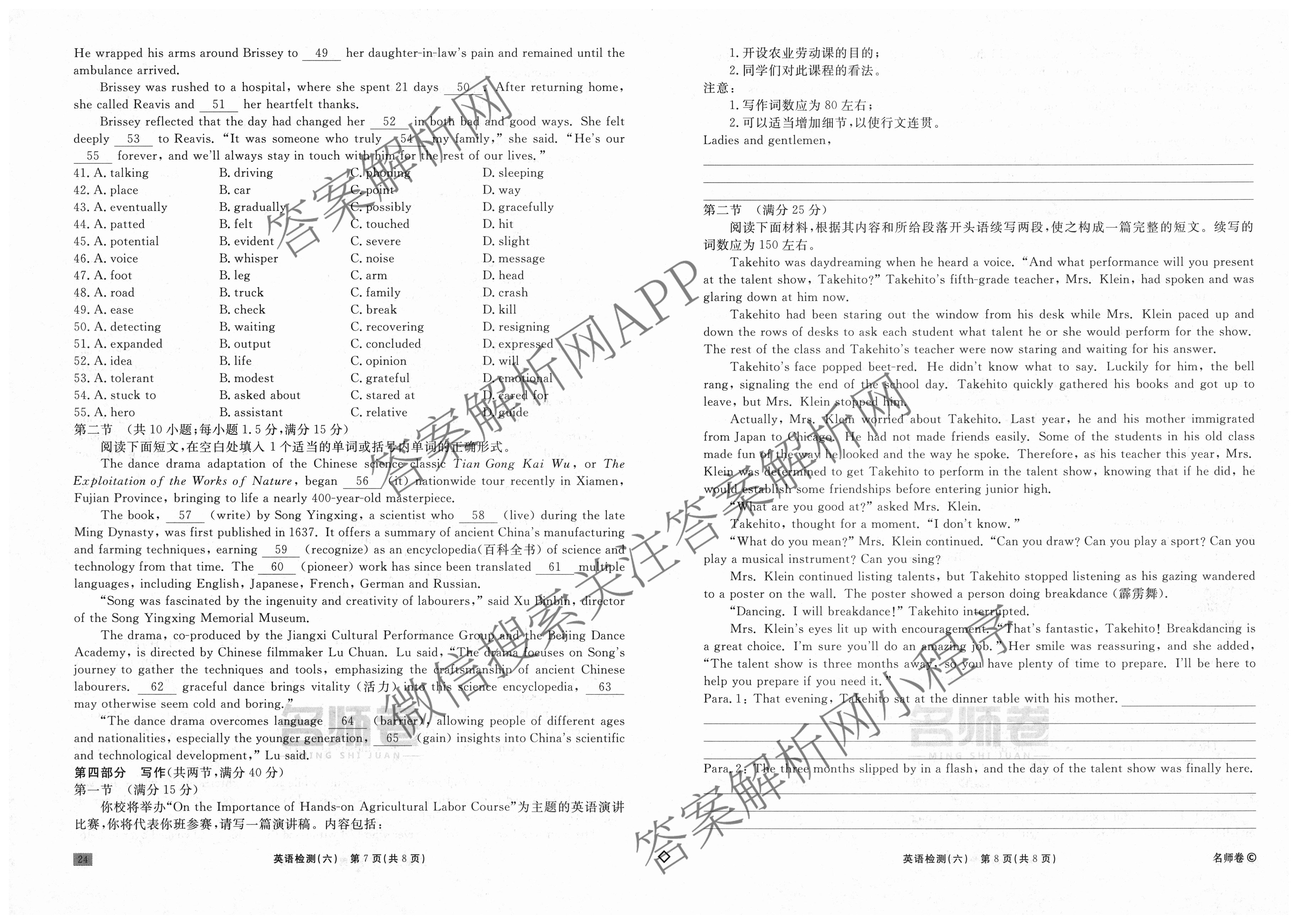 衡水名师卷·2025-2026学年度高三一轮复习单元检测卷·英语(空心菱形)·检测(六)6试题,目前分科卷答案网已经汇总了衡水名师卷·2025-2026学年度高三一轮复习单元检测卷·英语(空心菱形)·检测(六)6试题的各科答案和试卷,获取更多衡水名师卷答案解析,请在关注本站。