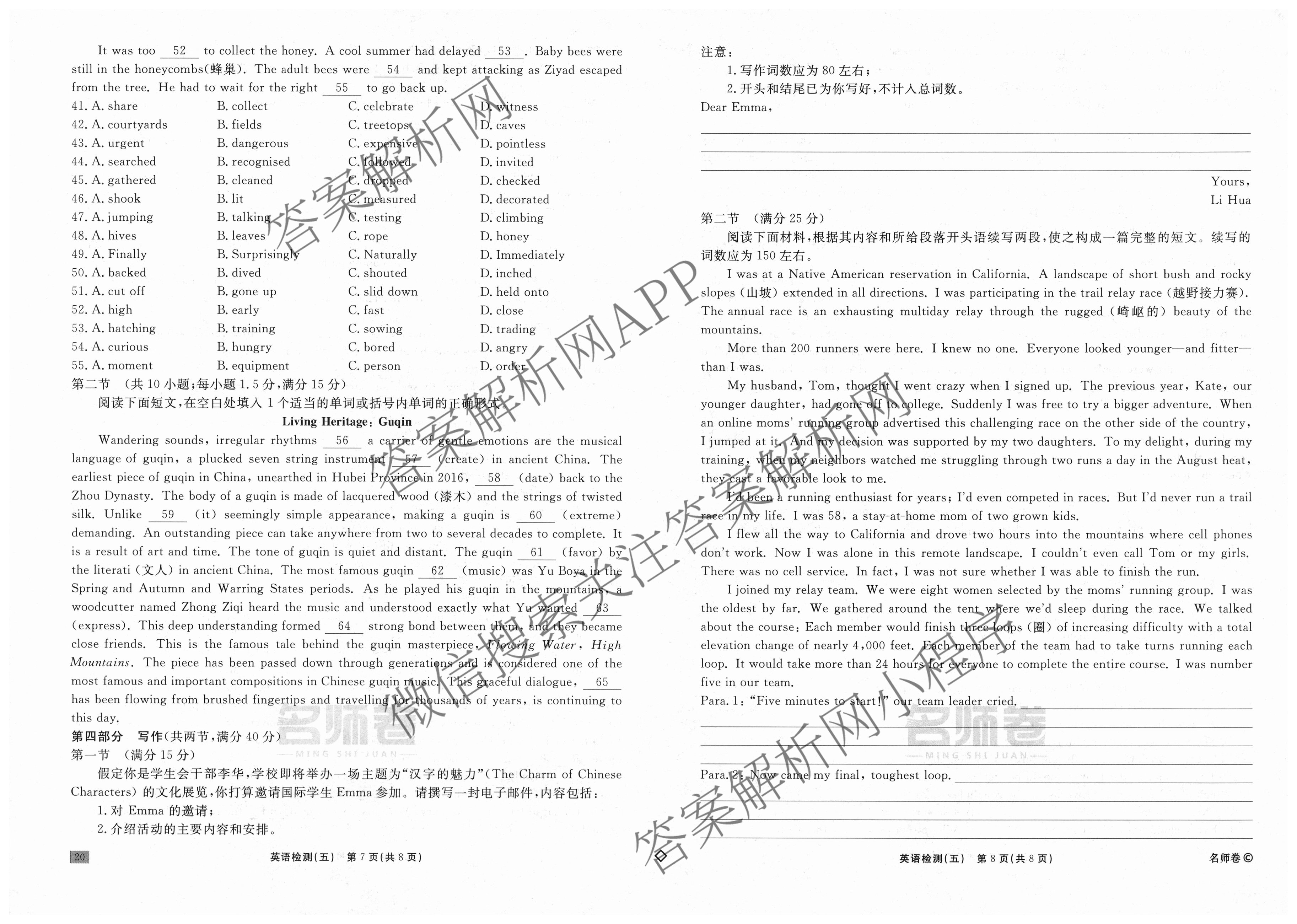衡水名师卷2025-2026学年度高三一轮复习单元检测卷英语(空心菱形)检测(五)5试题