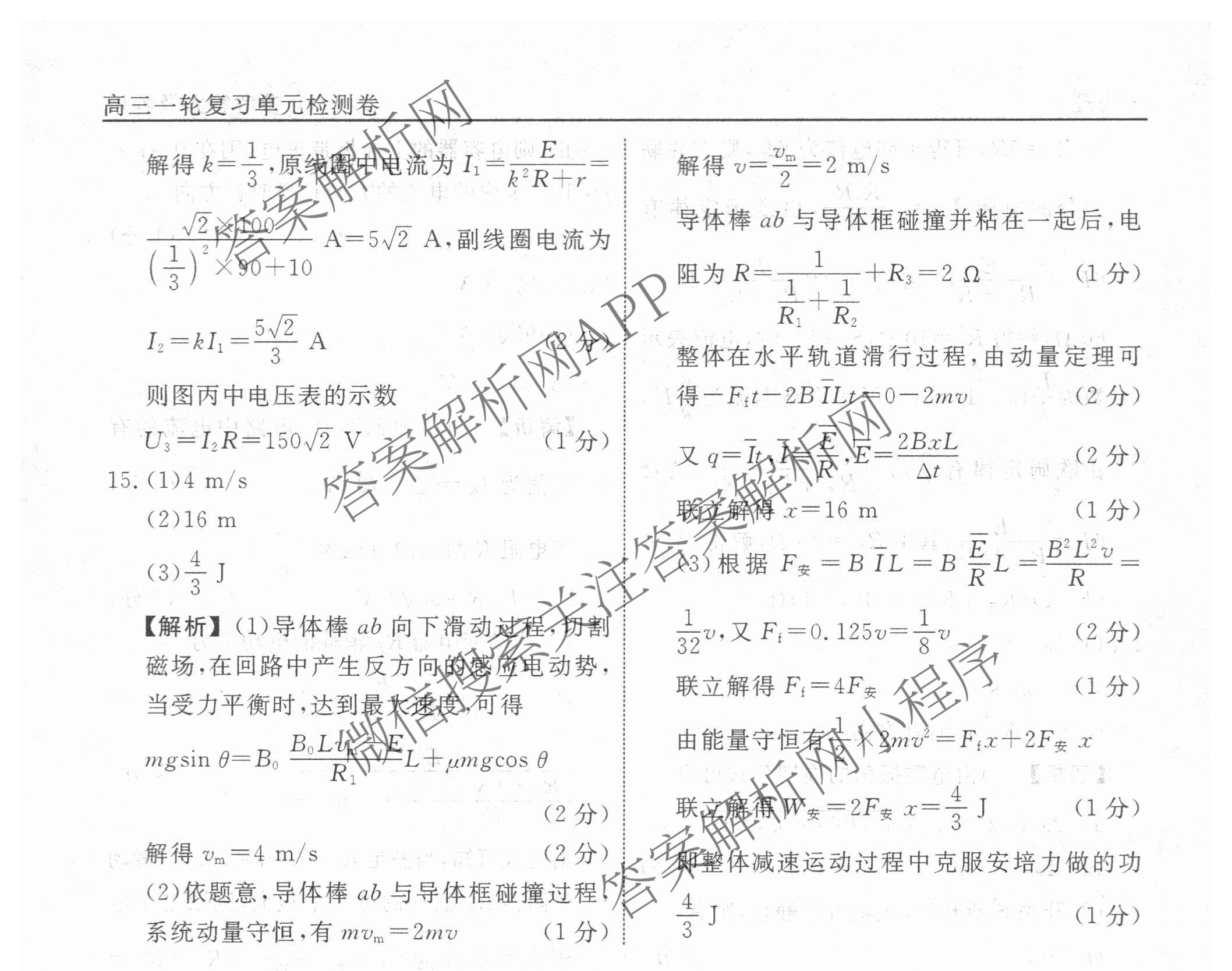 衡水名师卷2025-2026学年度高三一轮复习单元检测卷物理(空心菱形)检测(十六)16答案