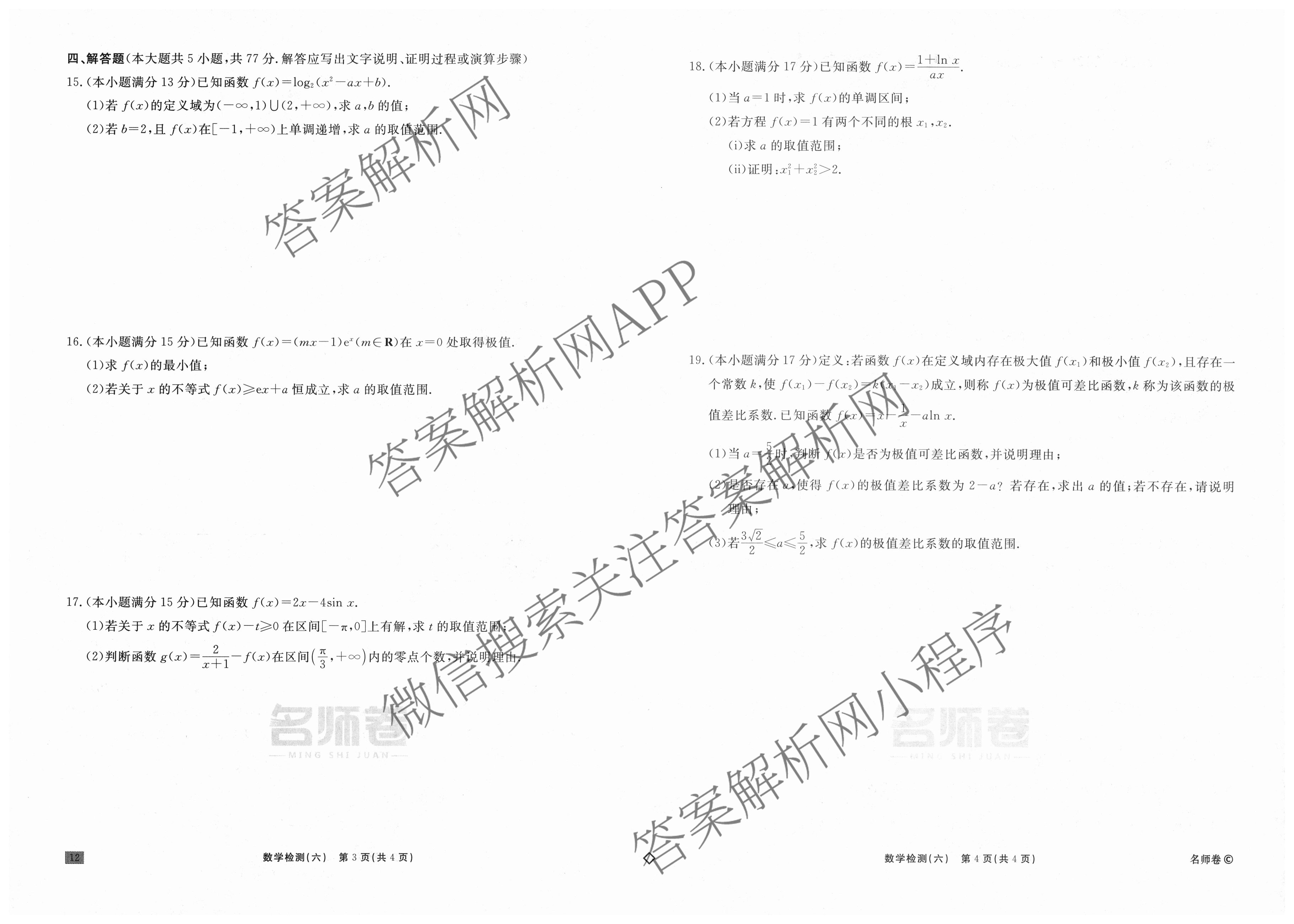 衡水名师卷·2025-2026学年度高三一轮复习单元检测卷·数学(空心菱形)·检测(六)6试题,目前分科卷答案网已经汇总了衡水名师卷·2025-2026学年度高三一轮复习单元检测卷·数学(空心菱形)·检测(六)6试题的各科答案和试卷,获取更多衡水名师卷答案解析,请在关注本站。
