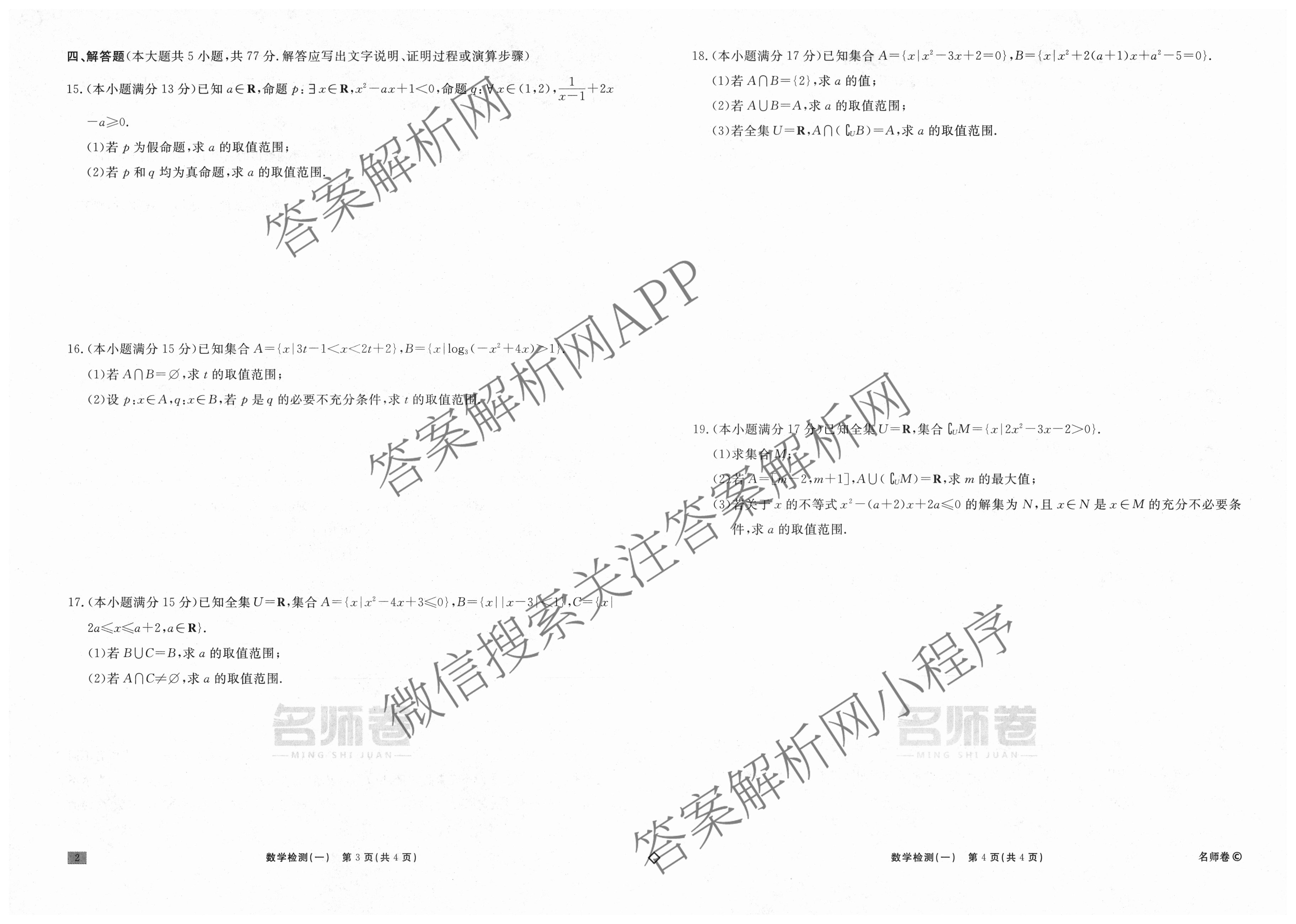 衡水名师卷·2025-2026学年度高三一轮复习单元检测卷·数学(空心菱形)·检测(一)1试题,目前分科卷答案网已经汇总了衡水名师卷·2025-2026学年度高三一轮复习单元检测卷·数学(空心菱形)·检测(一)1试题的各科答案和试卷,获取更多衡水名师卷答案解析,请在关注本站。