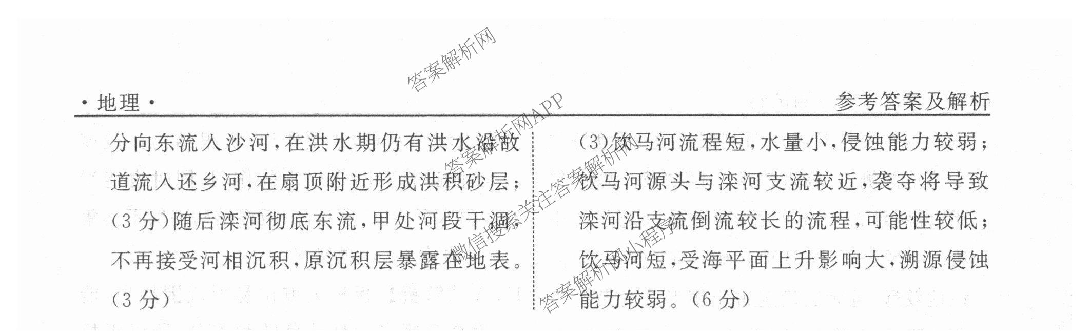 衡水名师卷2025-2026学年度高三一轮复习考点测试卷(十一)11地理(40分钟空心菱形)答案