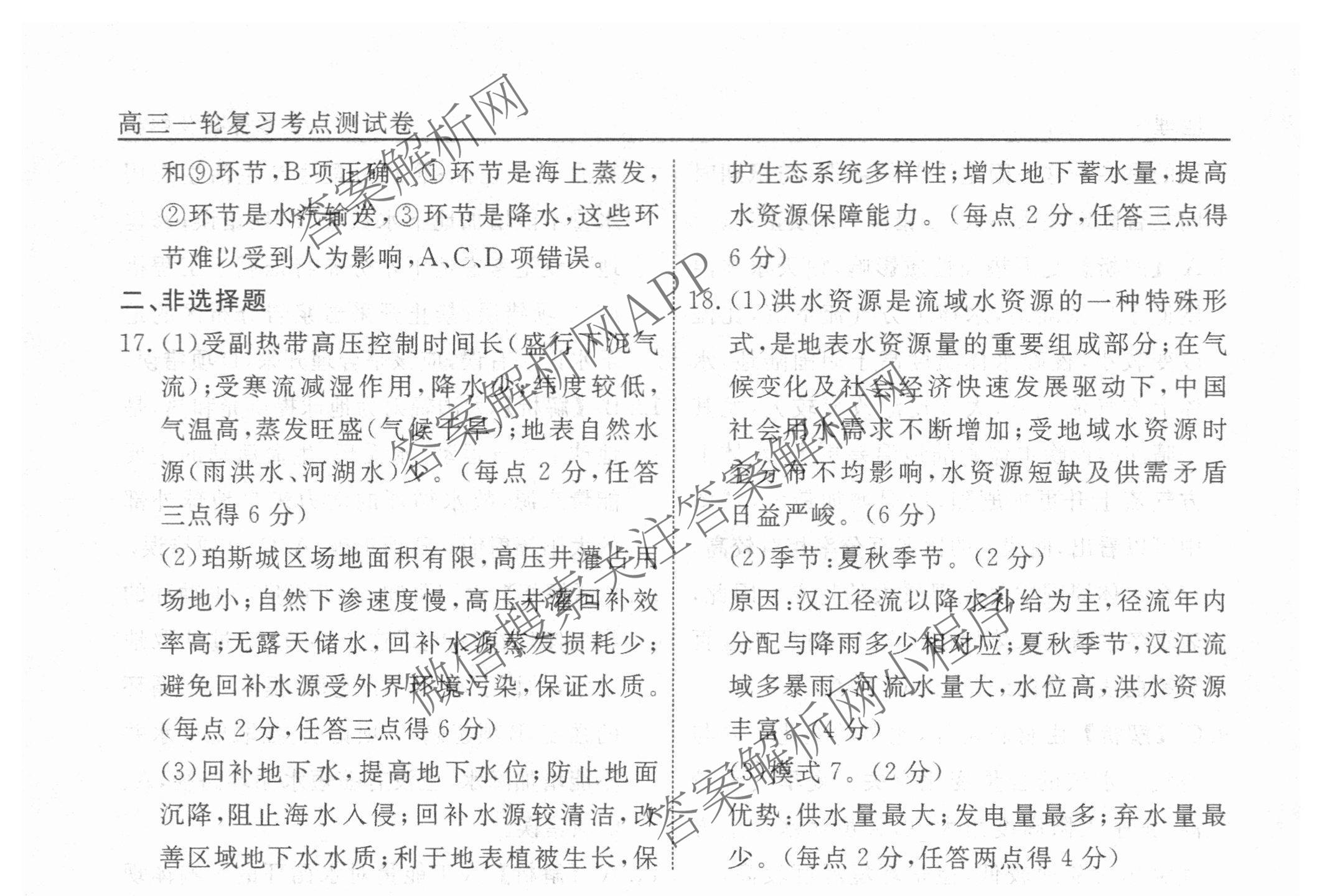 衡水名师卷2025-2026学年度高三一轮复习考点测试卷(八)8地理(40分钟空心菱形)答案