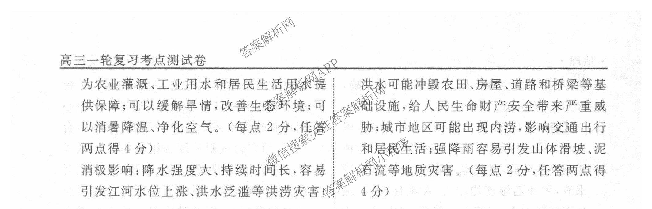 衡水名师卷2025-2026学年度高三一轮复习考点测试卷(六)6地理(40分钟空心菱形)答案